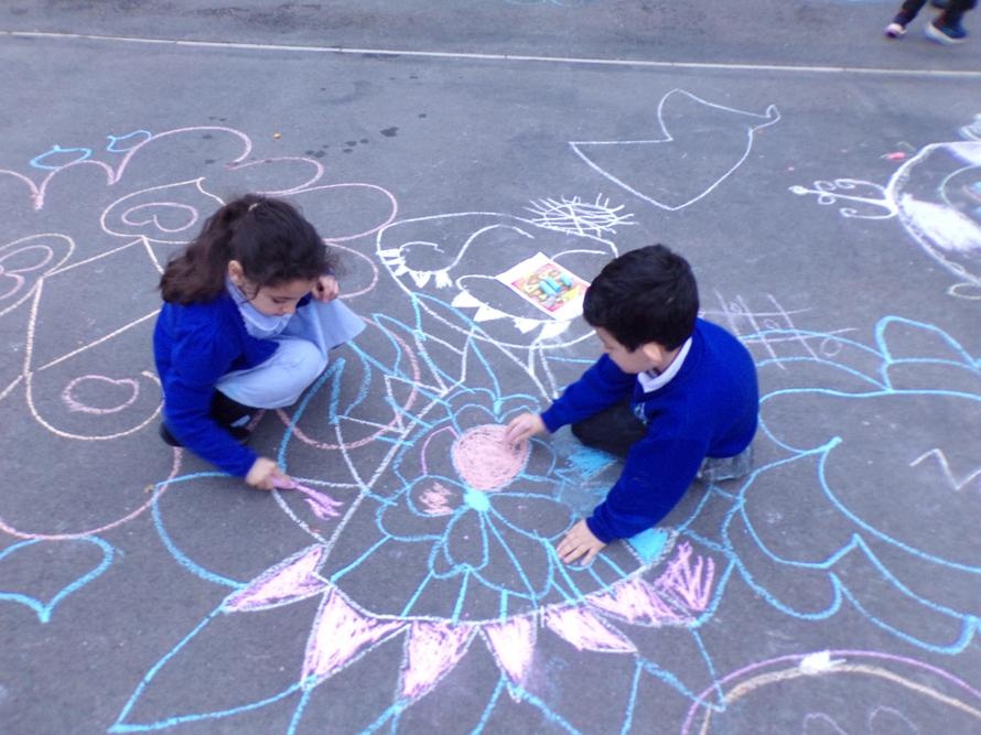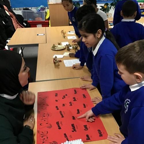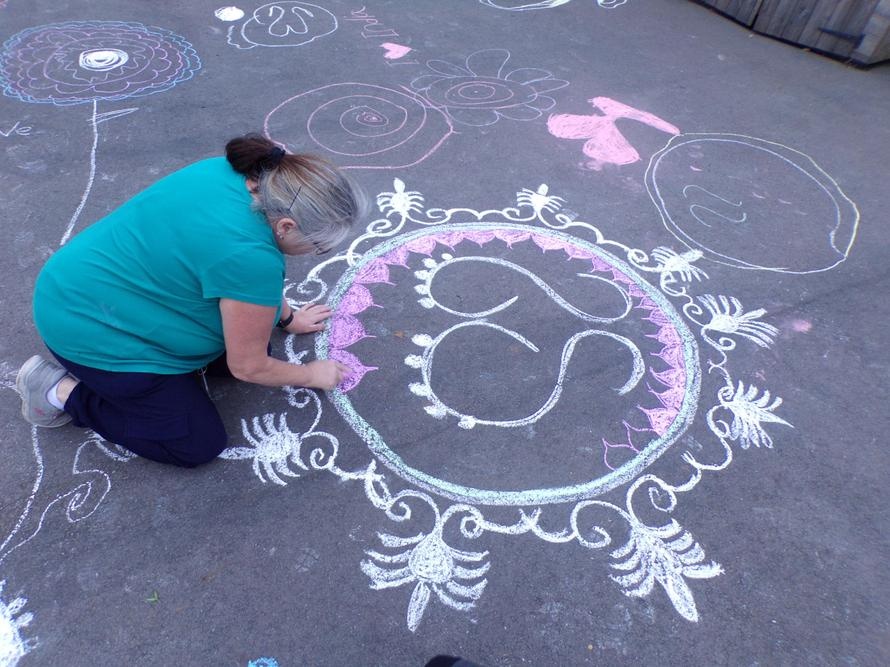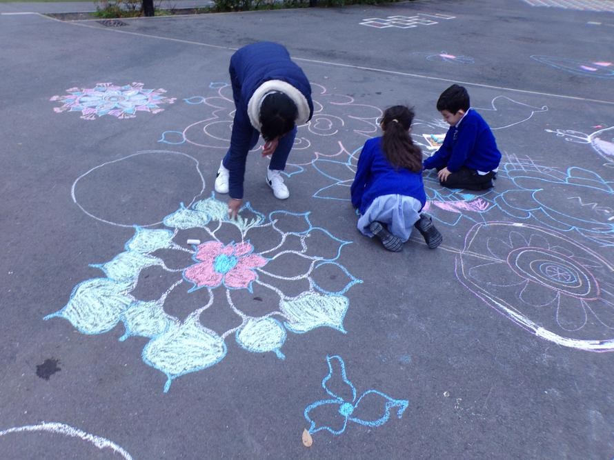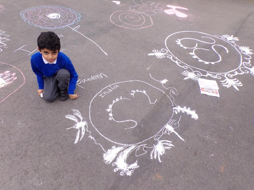 We held a special day this term where we celebrated lots of things about India and the Indian culture. We practiced Bollywood dancing, drew Rangoli patterns on the playground and experienced our very own Indian museum in our own classrooms!