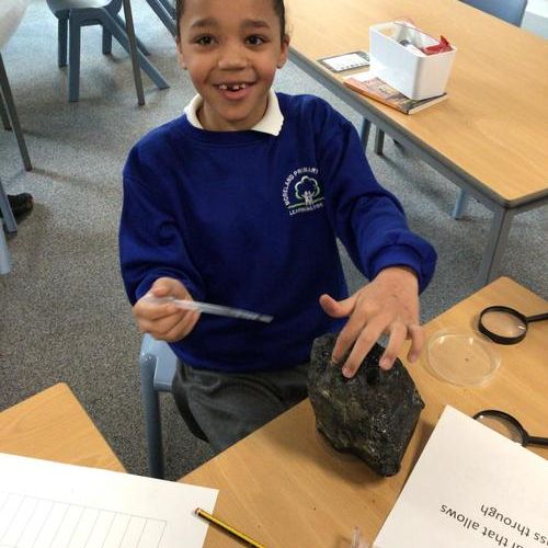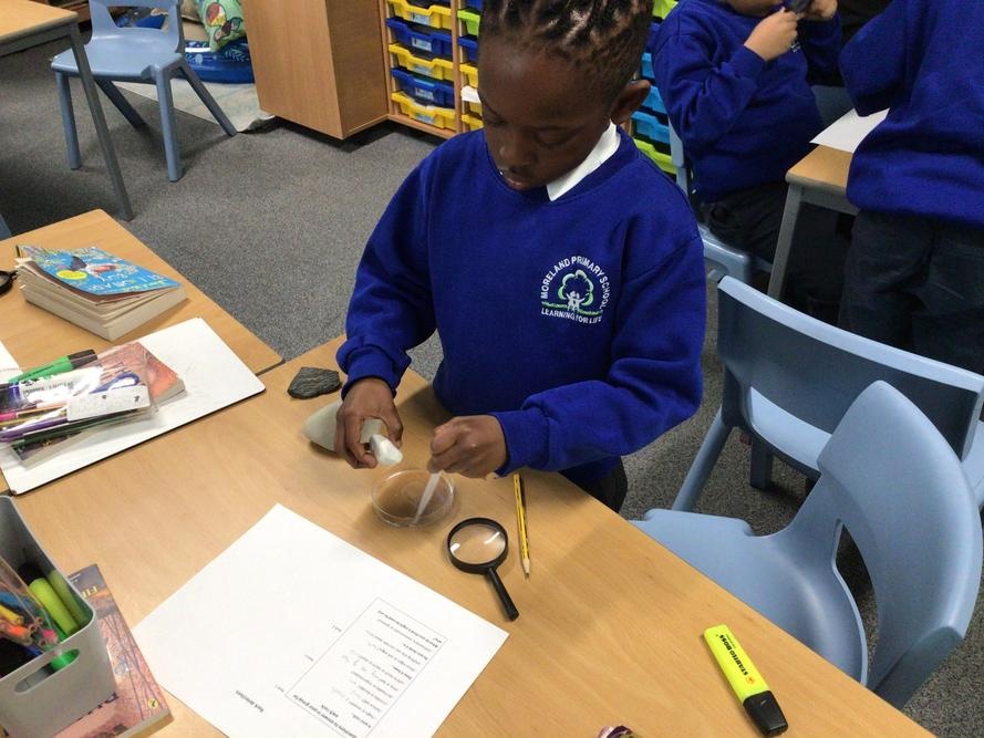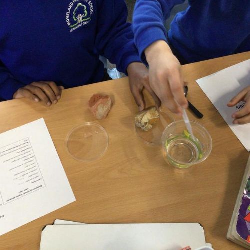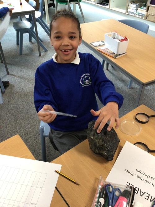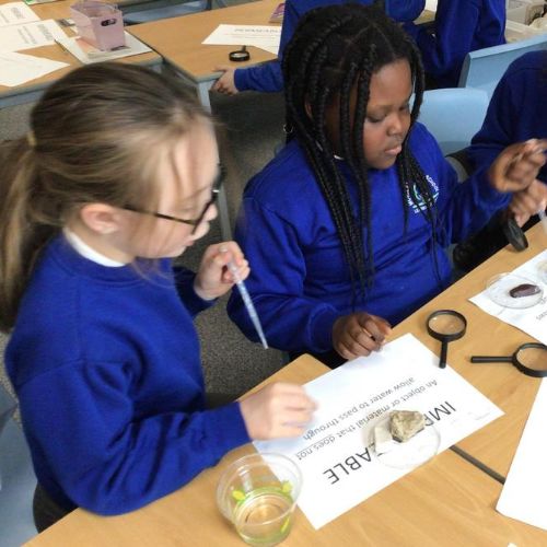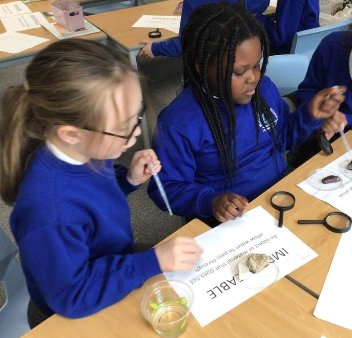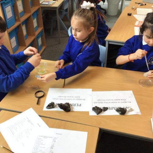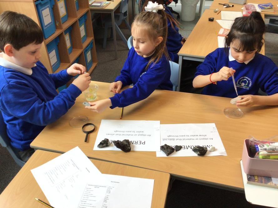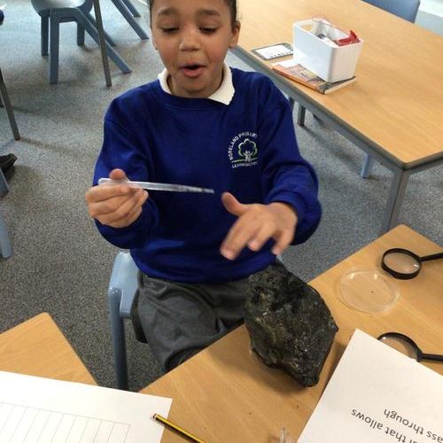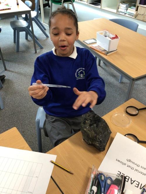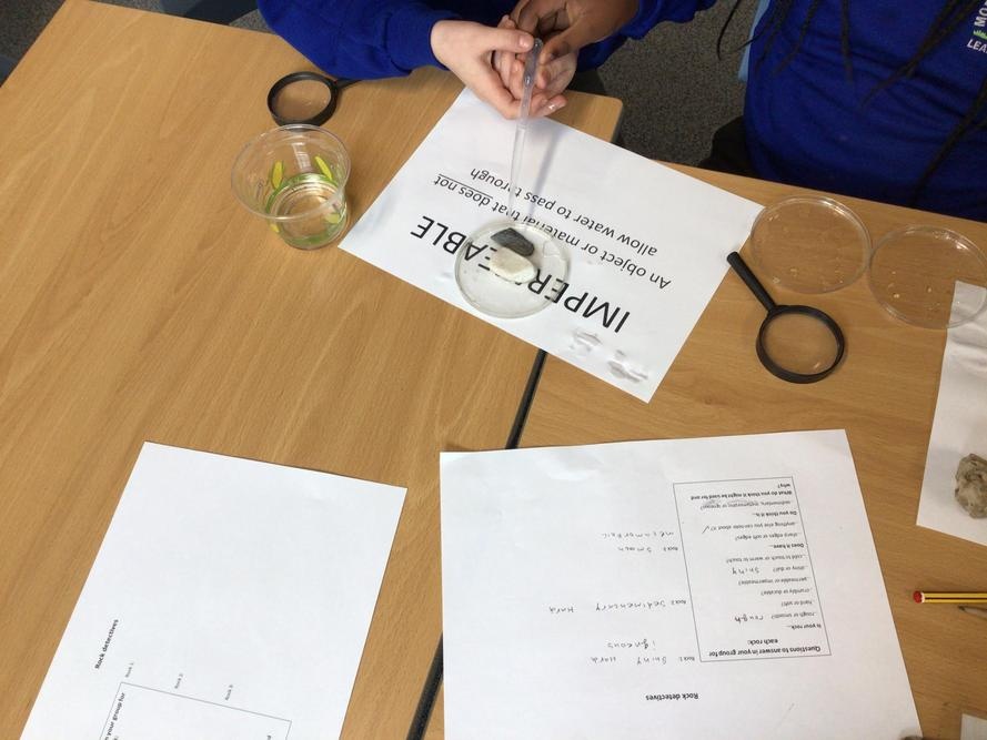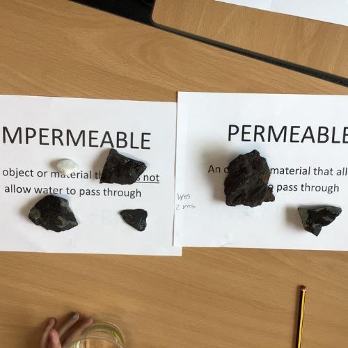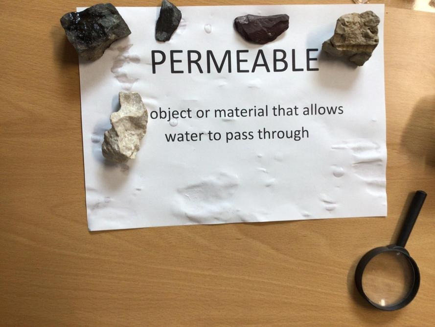 We then carried out an experiment looking at various rocks to see if they were permeable or impermeable. By dropping water on our rocks we could see if they let the water run through or if the water sat on top.