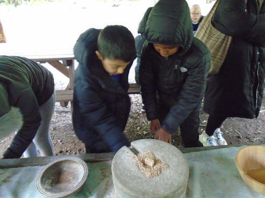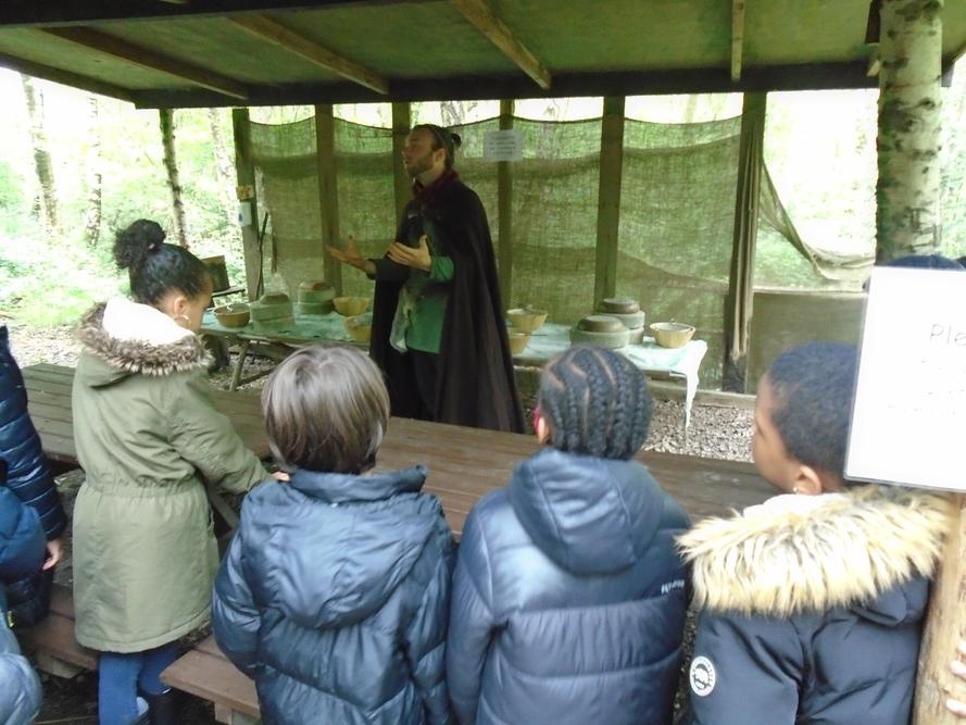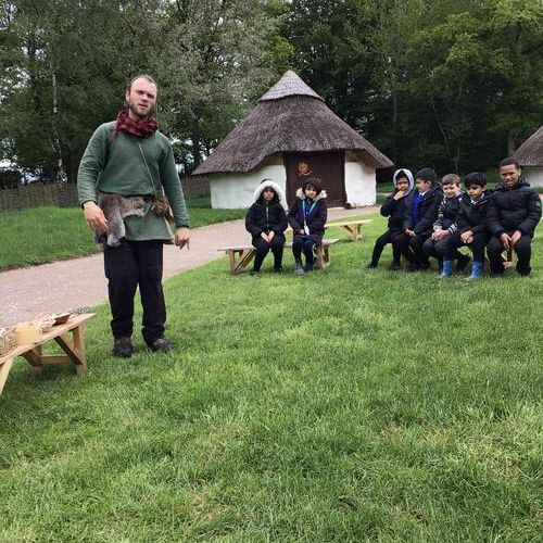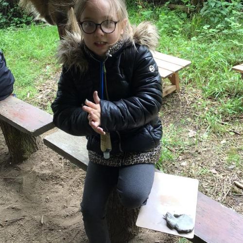 Today we visited a stone age village! We learnt about the changes in Britain from the Stone Age to the Iron Age. After traveling on the coach we were greeted by a real stone age man and woman! We spent the day trying out various activities and processes used during prehistory. We made bread, using a Quern stone to grind up the wheat and make the flour. We used the same process in flint knapping to create our own arrow heads out of soap. We created stone age pots, visited a chieftains roundhouse and had a go at trading using animal skins and horns! We learnt all about what life would have been like during the prehistoric period. What an amazing day!