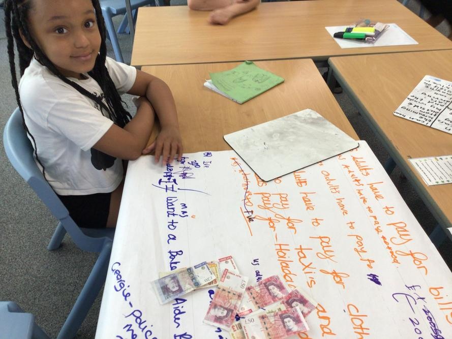 In PSHE we learnt all about money. We thought about all the things we have to spend money on. We then made a guess about how much each one would cost. We picked a job and got paid before choosing how we wanted to spend or save our money!