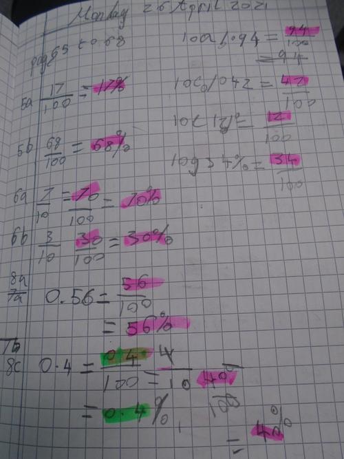 For the last two weeks we have in Maths been working on converting from percentage to fractions and decimals and visa versa