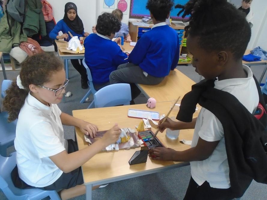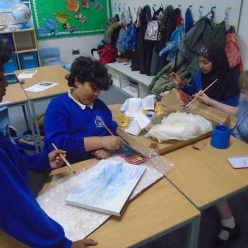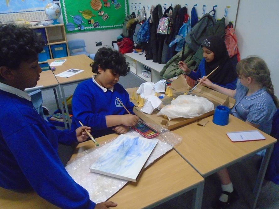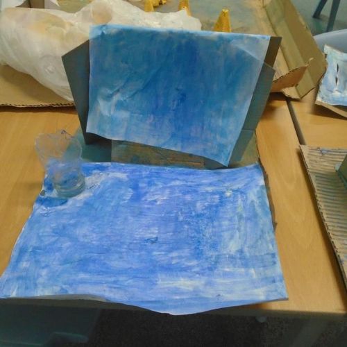 This week we have been creating our 3d models of icebergs from recycled materials. After we had completed our models, we were painted the models