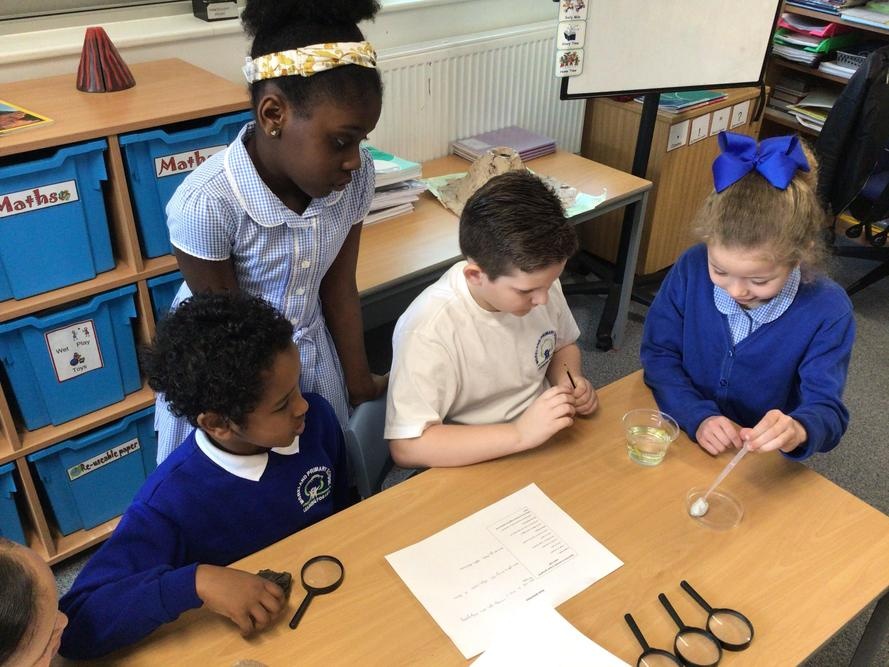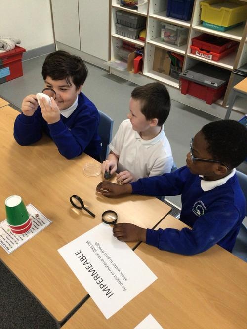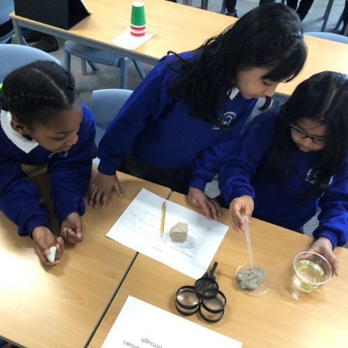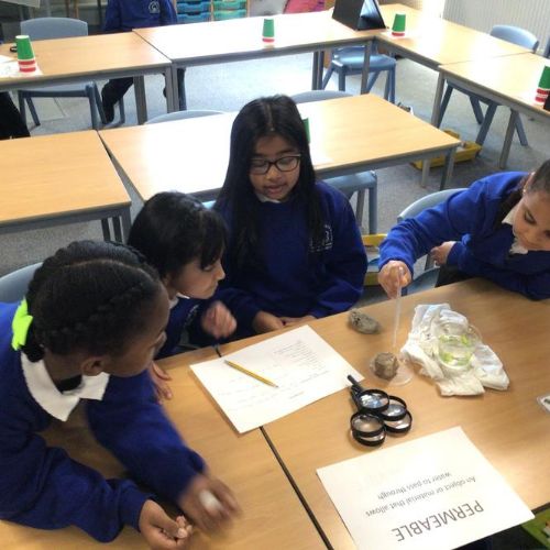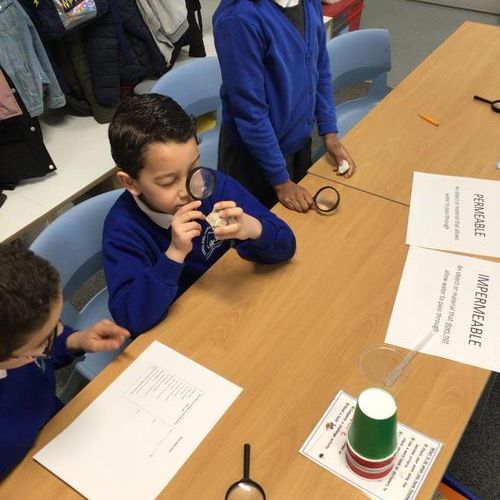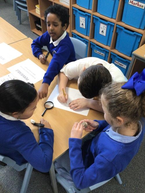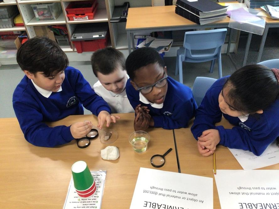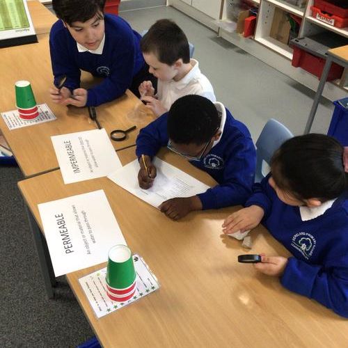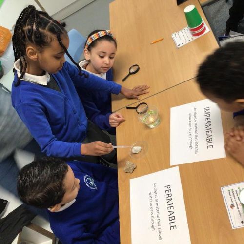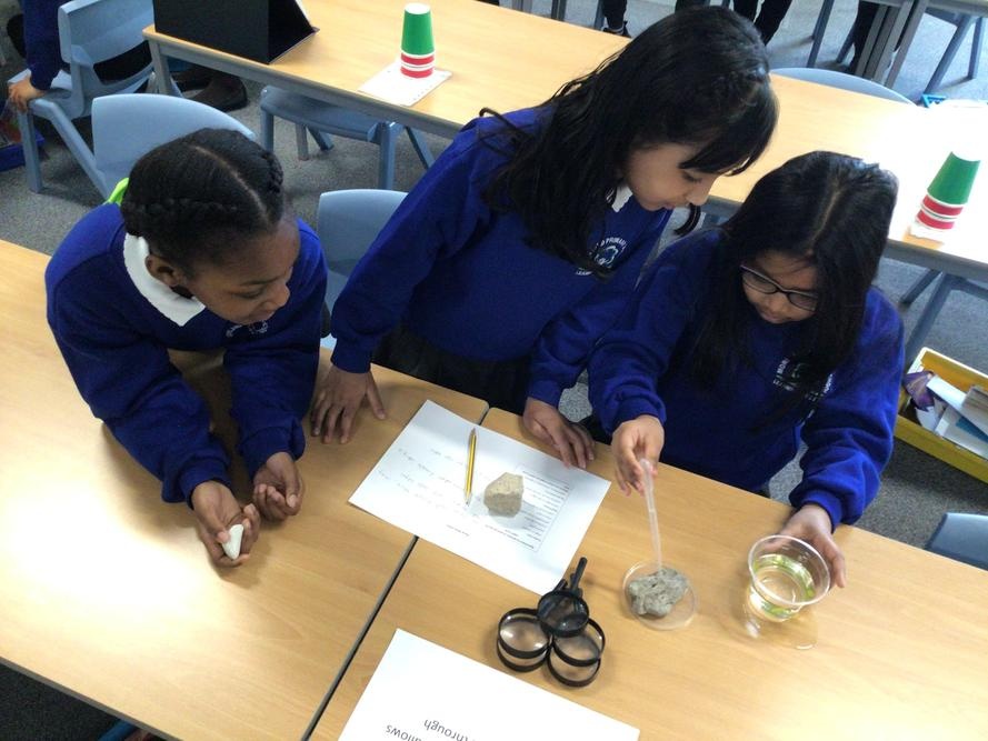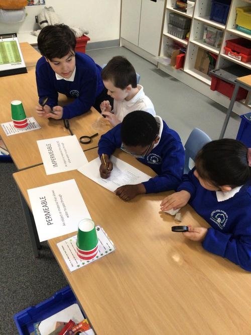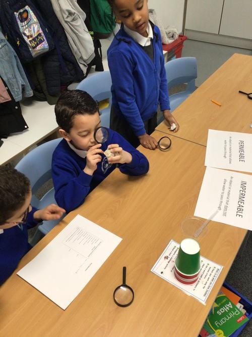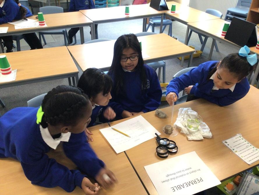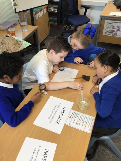 We then carried out an experiment looking at various rocks to see if they were permeable or impermeable. By dropping water on our rocks we could see if they let the water run through or if the water sat on top.