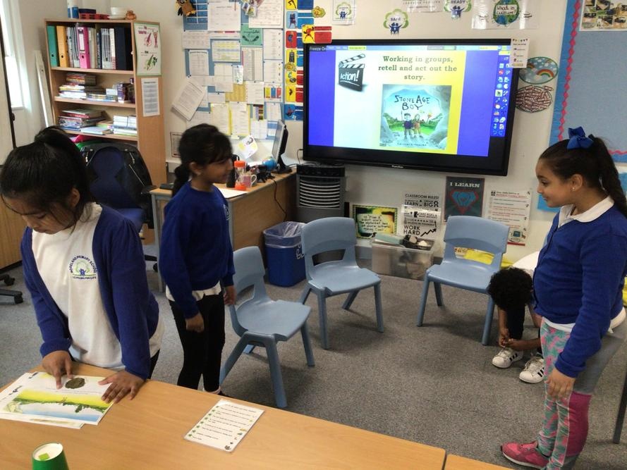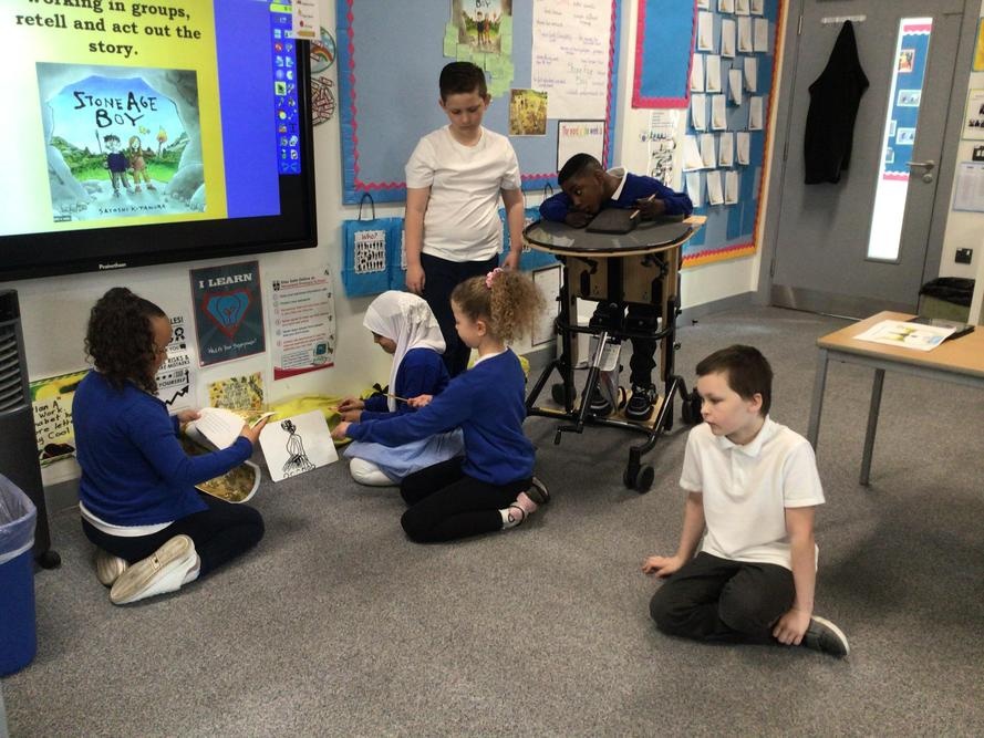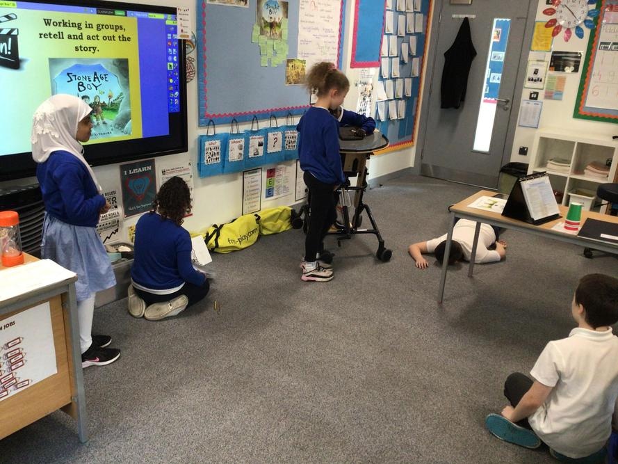 On Wednesday 21st April, we had a go at retelling our new book - ‘Stone Age Boy’. In groups, we prepared and acted out the story. Then, we looked at the illustrations and used our imagination to redesign the front cover for the book.