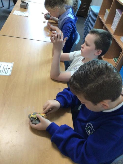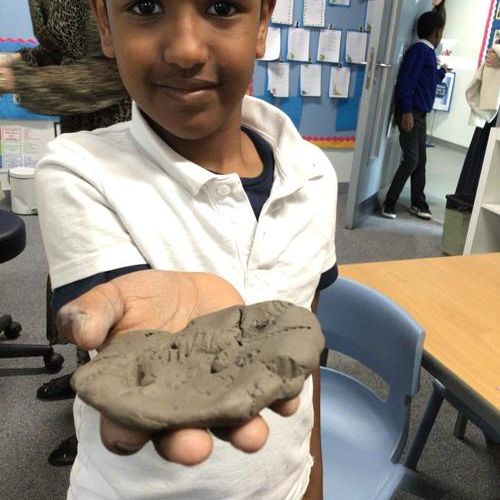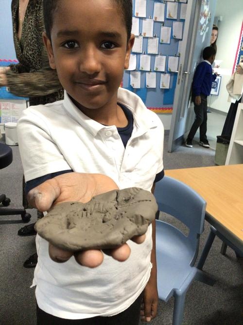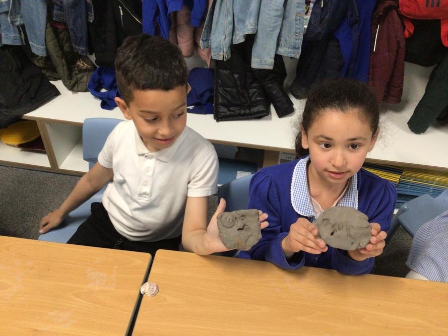 We enjoyed a lot making our own fossils out of clay!
