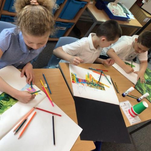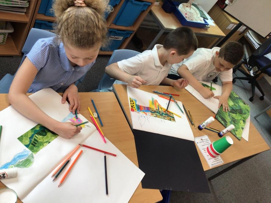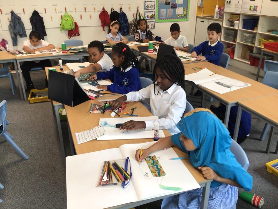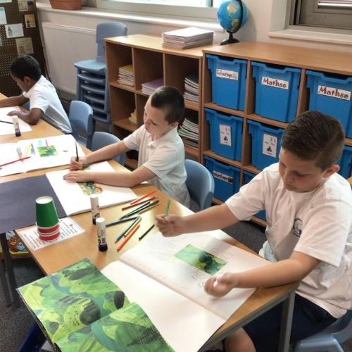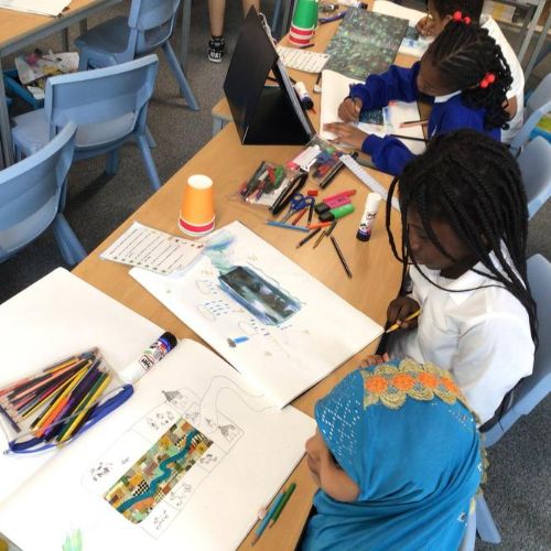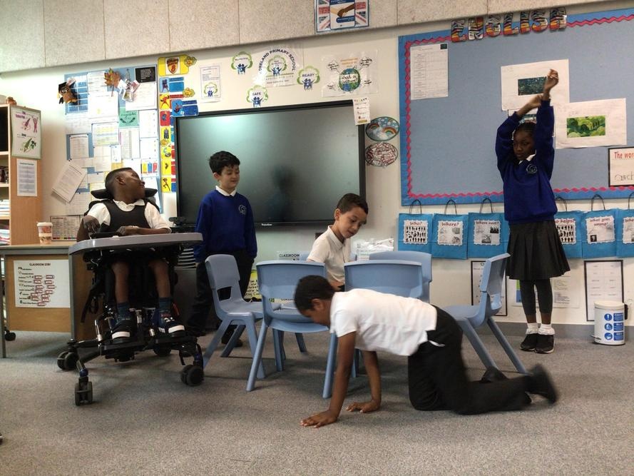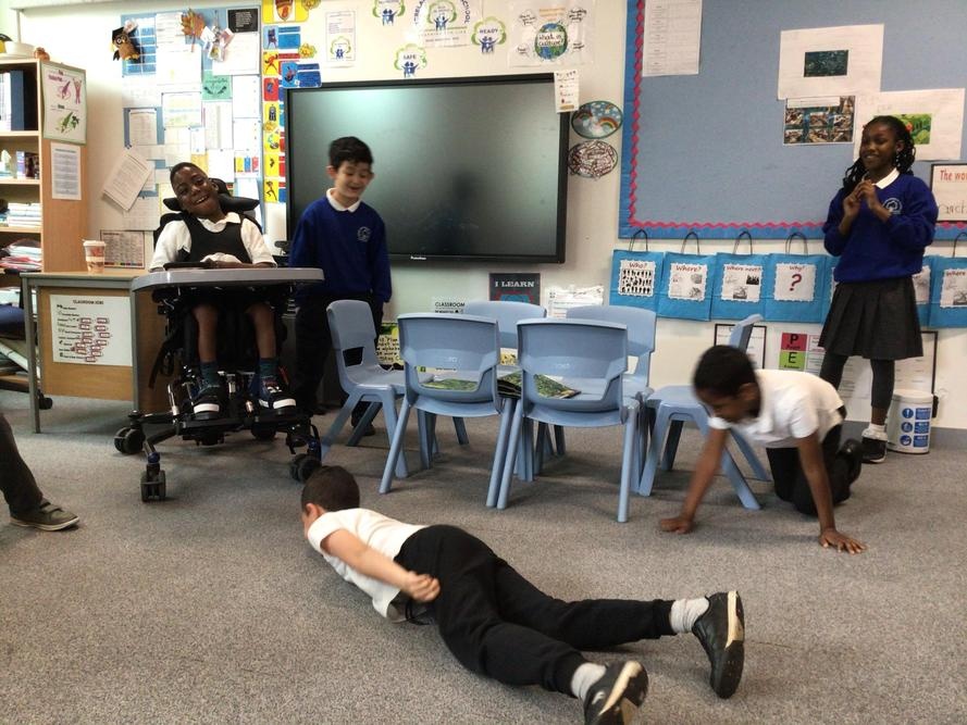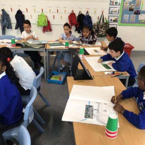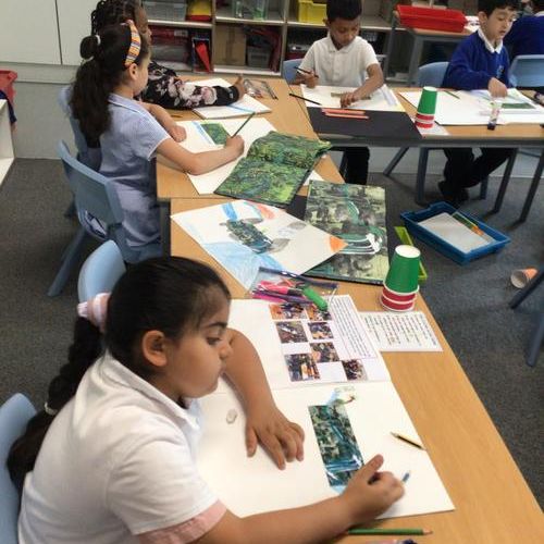 Today, we looked at the immersive illustrations in ‘A River’ and used sketchbooks to create our own artwork. Then in groups, we chose a picture, used our senses and imagination to act out the story captured in it.