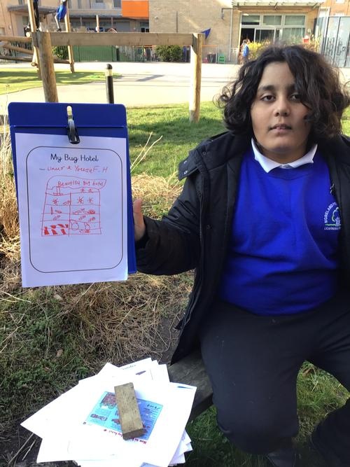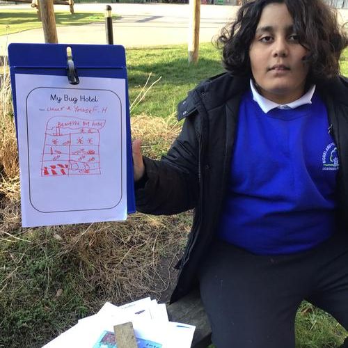 A few of us were also keen to add to the bug hotel and did some research into what different invertebrates like in a home. We started to collect some natural resources to add to it, but we still have some way to go to make it a Brilliant Bug hotel, hopefully we can continue to add to it along with the rest of the school. Some of us also made posters to remind others to protect the trees that we will be planted next session.