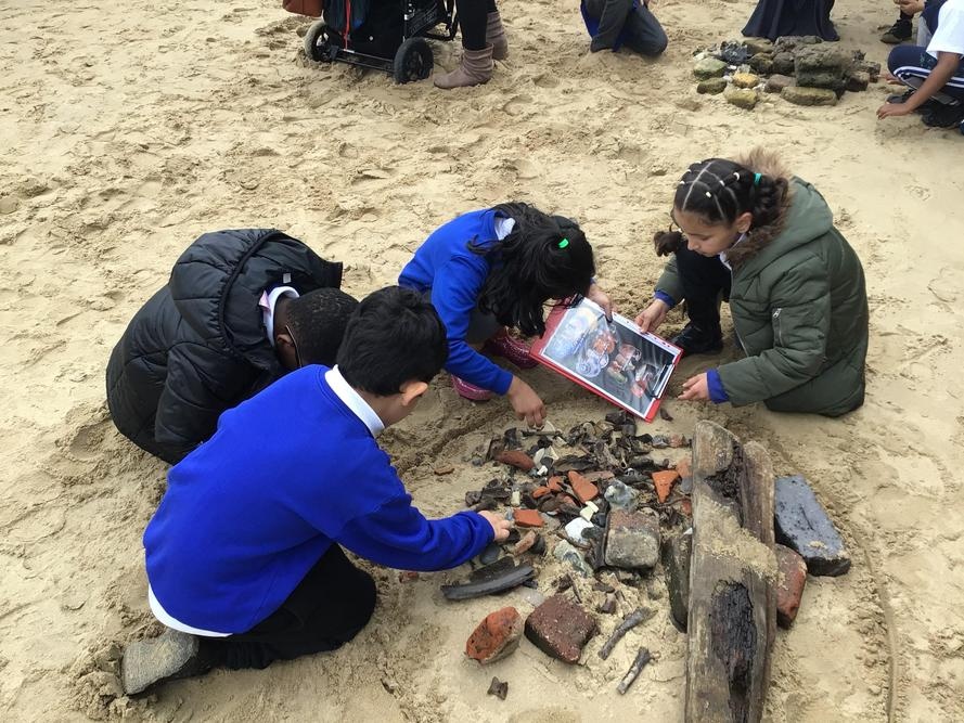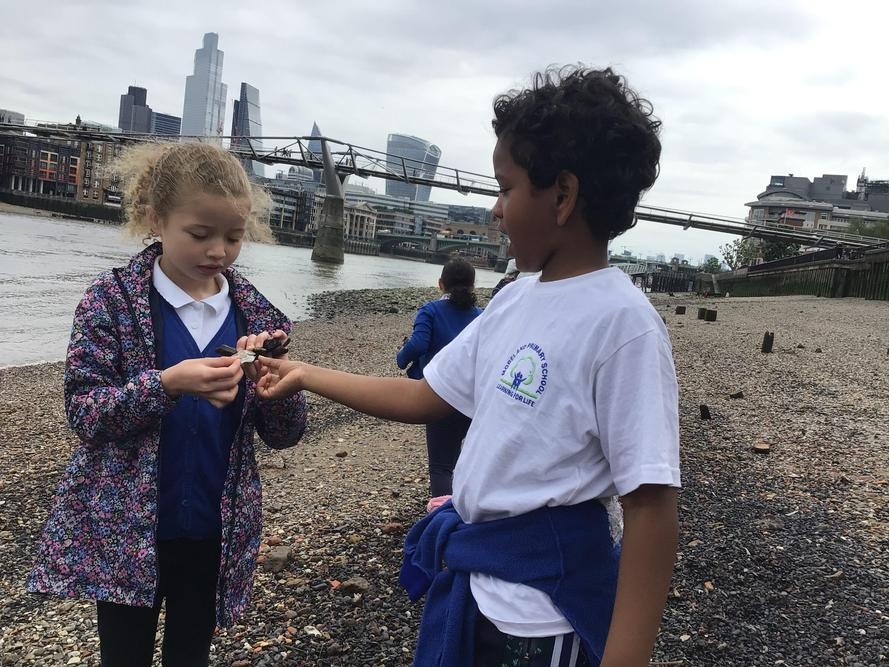 On the riverside we developed an understanding of what the Thames is like today and gained knowledge of river’s geography. By employing the historical enquiry skills used by archaeologists, we discovered how fragments of history can help build up a picture of the past. We also learned how to identify and date artefacts; investigated how artefacts found around the Thames help to build a picture of London’s history.