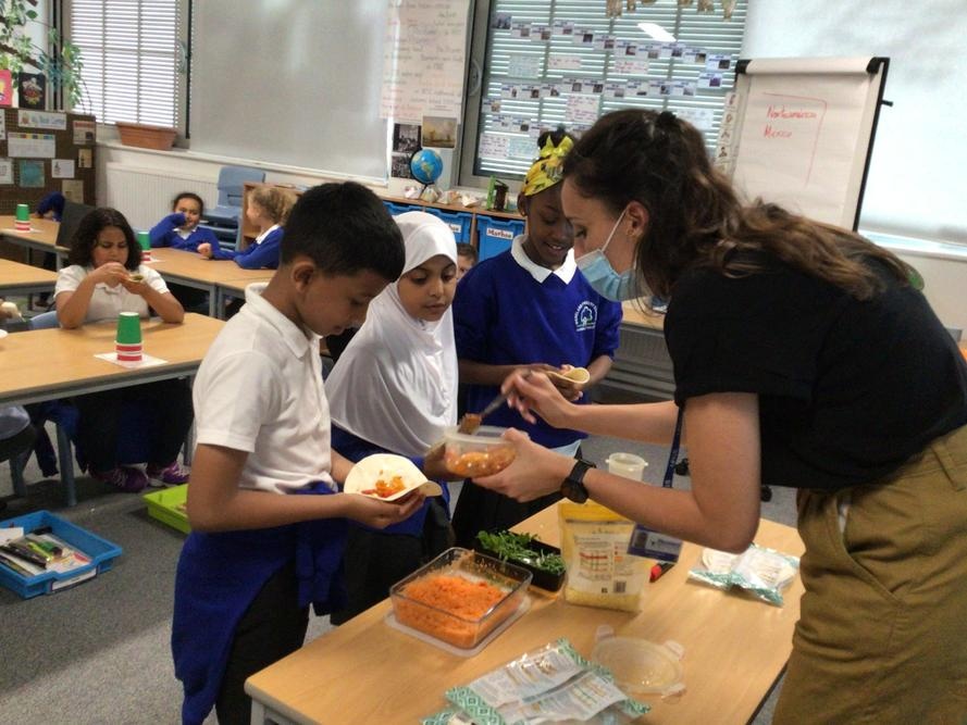 Today we made delicious tacos! We topped small hand-sized corn tortillas with a filling and enjoyed eating them! Thank you Blanca for our amazing afternoon.