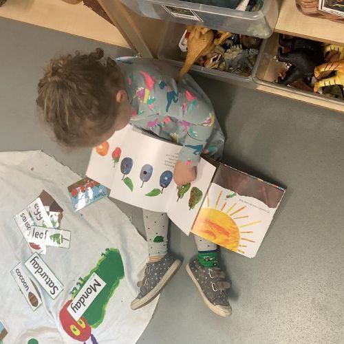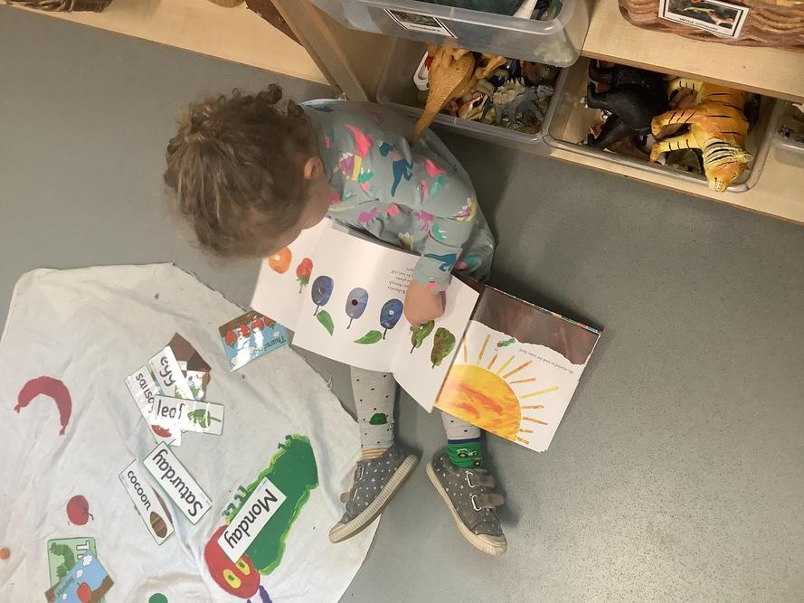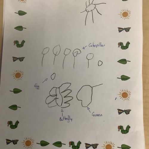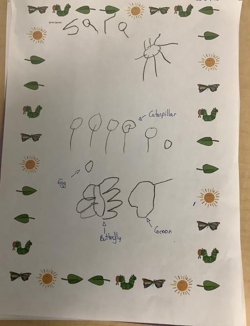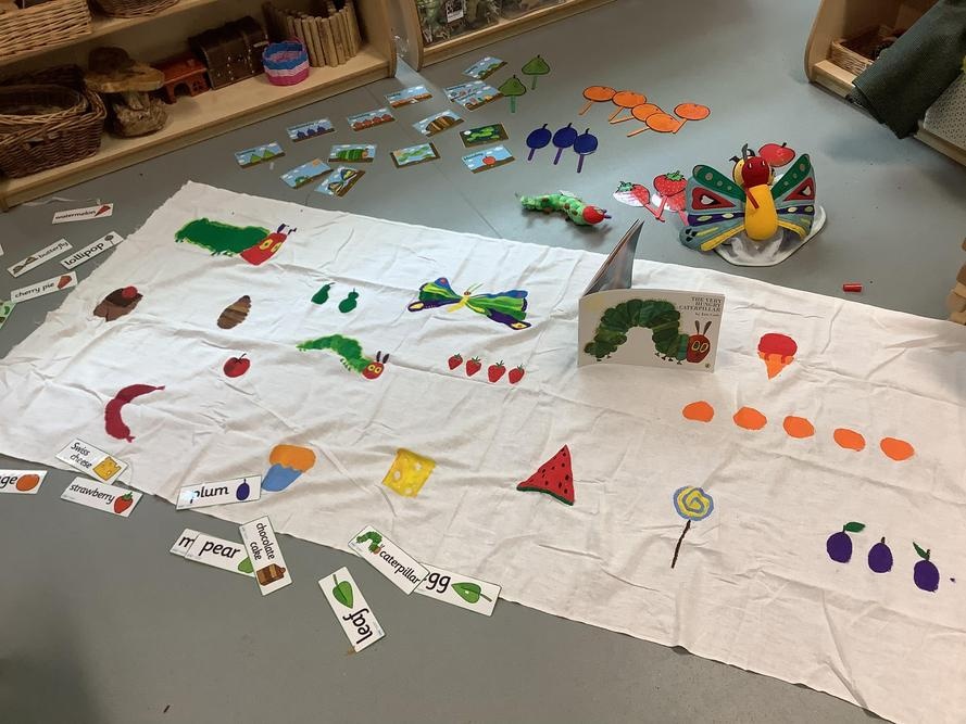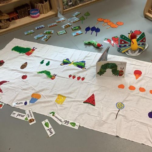 This week we have started the story ‘The Very Hungry Caterpillar’. Our children have been learning about each stage of the butterfly lifecycle by reading and commenting the story, making an amazing story map, crafts and playing with the story resources outdoors.