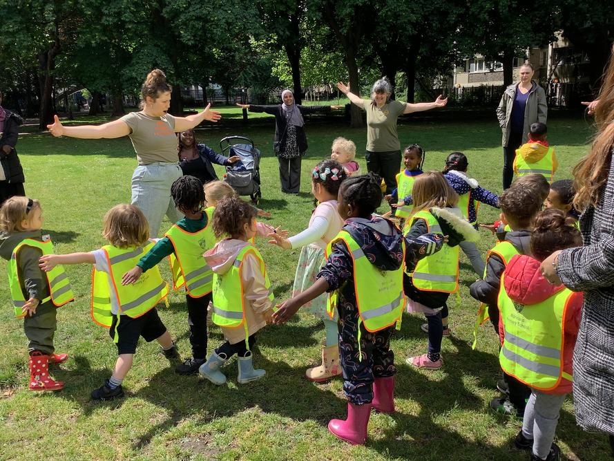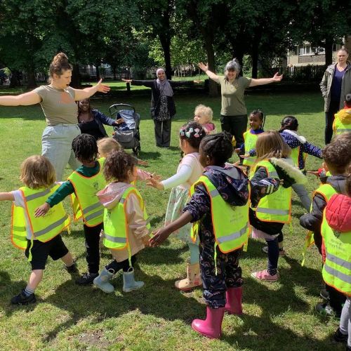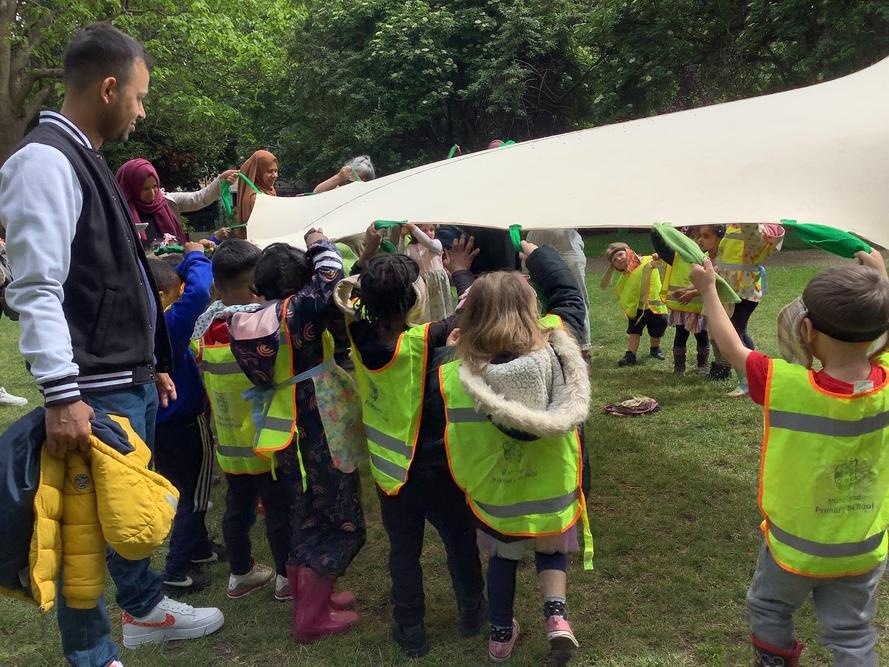 Willow class went on another trip to King Square gardens. On arrival, we all had to shelter under the church to be safe from the thunderstorm. Finally the sun came out and we were able to go into the park and react the story The enormous Turnip.