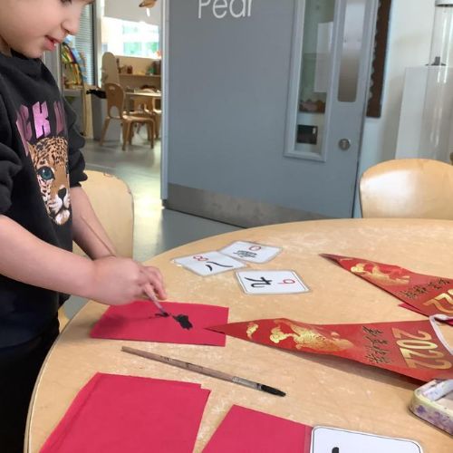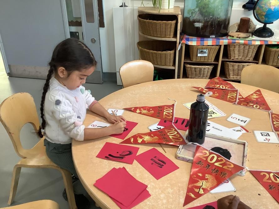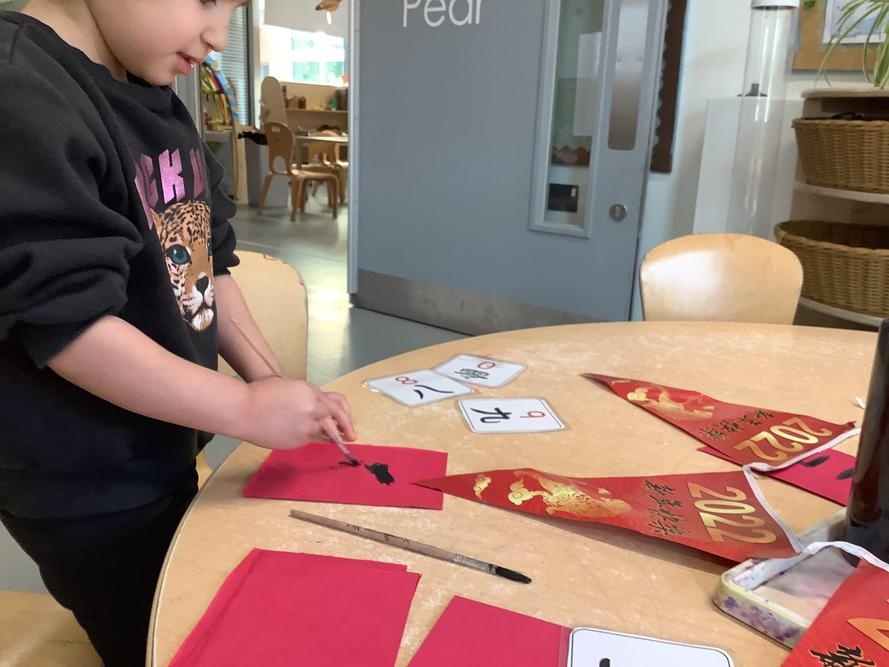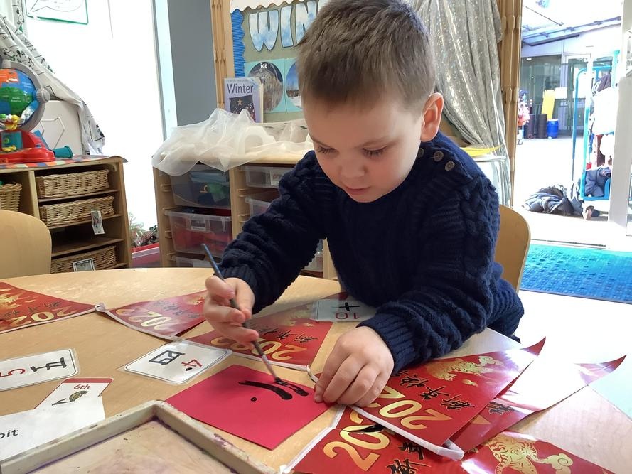 At Nursery we did lots of playing and learning about how Chinese New Year is celebrated. In Lilac class we painted some Chinese numbers . By doing these activities we are learning to understand about the Chinese culture including their food, clothes and traditions during their festive season.