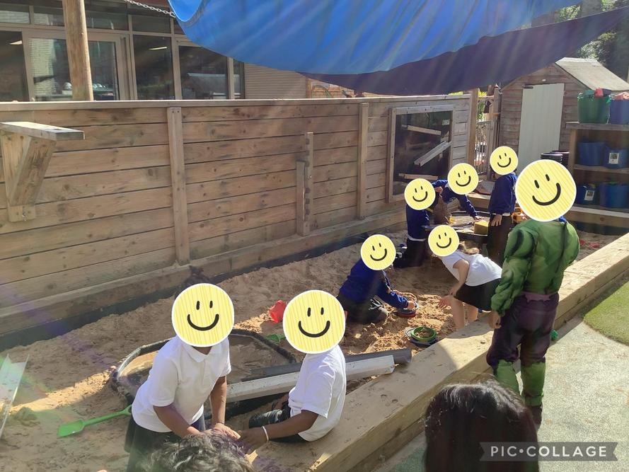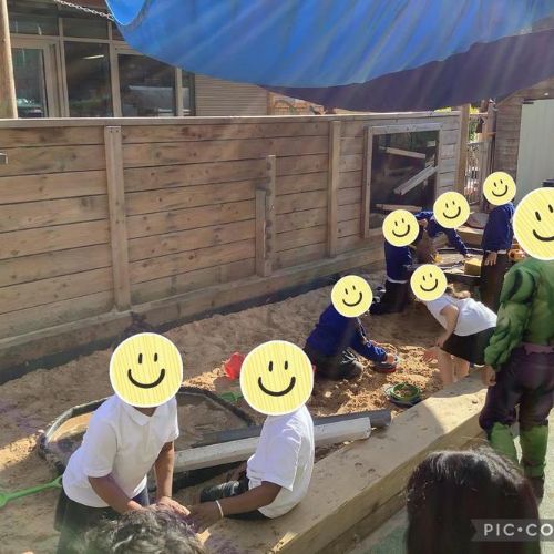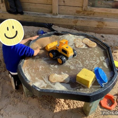 Last week Pear Class loved playing in the sandpit. They mixed water and sand together and explored the different textures that it made.