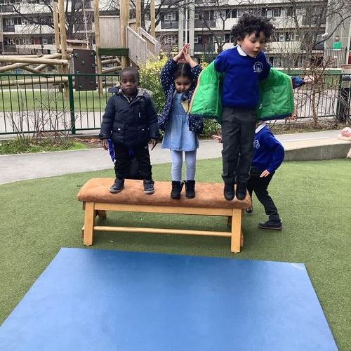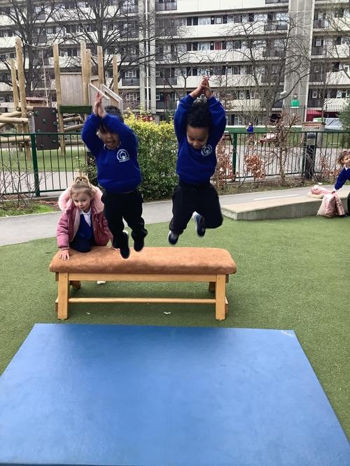 This week the children loved getting active on the gymanastics pummel horse and springboard. They learnt to do a star jump, pencil jump and tuck jump, as well as doing a run up to spring off the springboard.