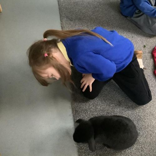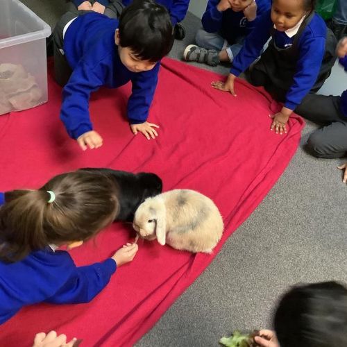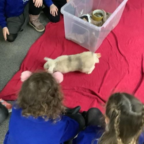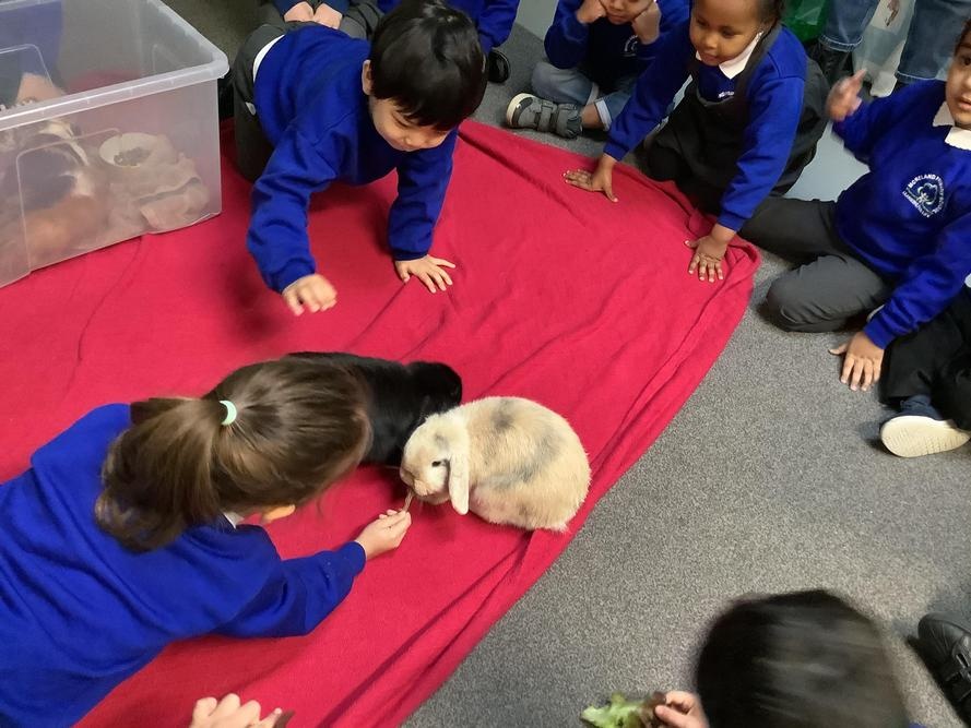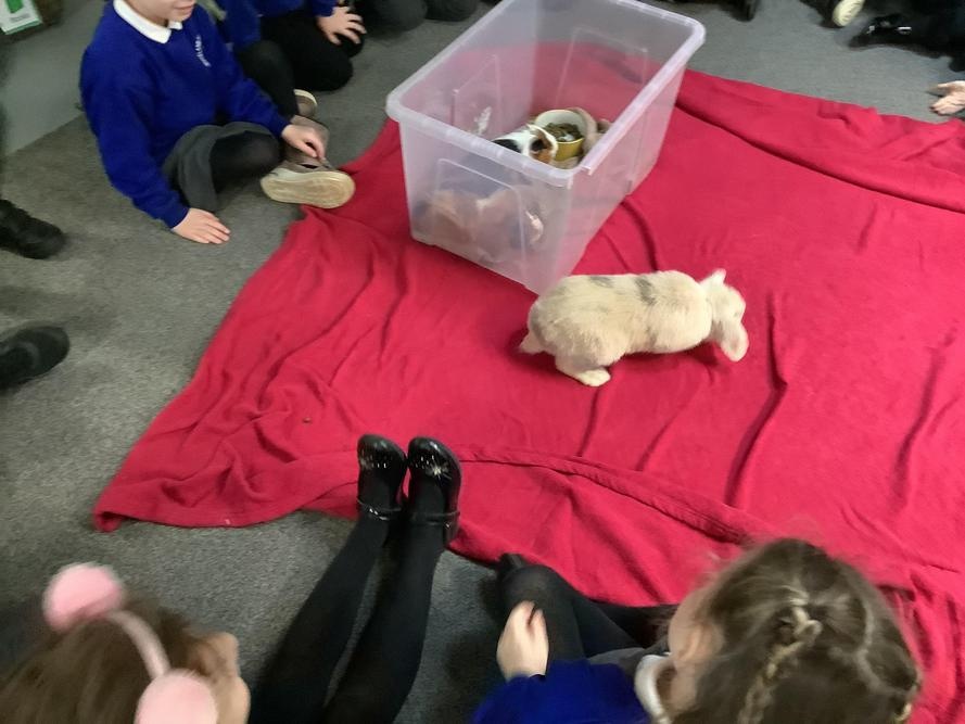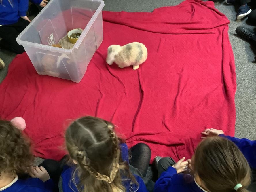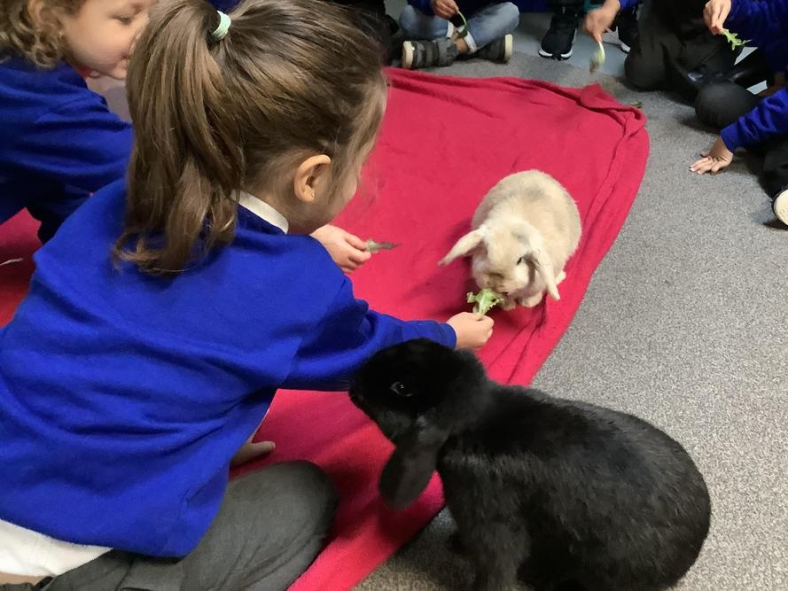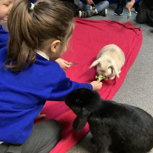 The children in Pear Class cared for our school pets this week, Bubble & Squeak and Salt & Pepper. The children learnt to be gentle with the animals, and were very quiet so the animals were not scared. They stroked and petted the animals, and fed them lettuce.