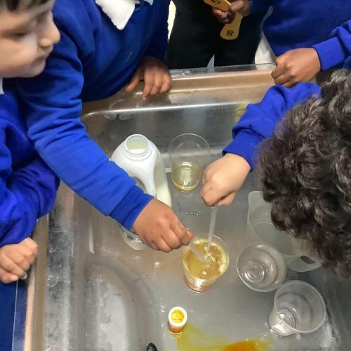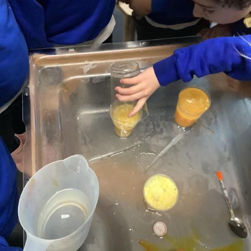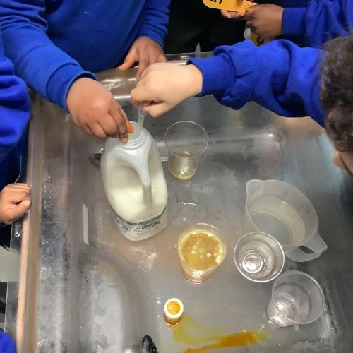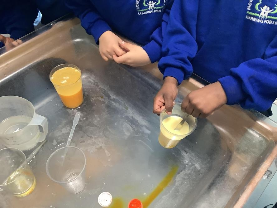 The children did an experiment making lava lamps. They were fascinated in the way that the water and oil separated and decided to change the experiment by swapping water for milk. Look at what happened ...