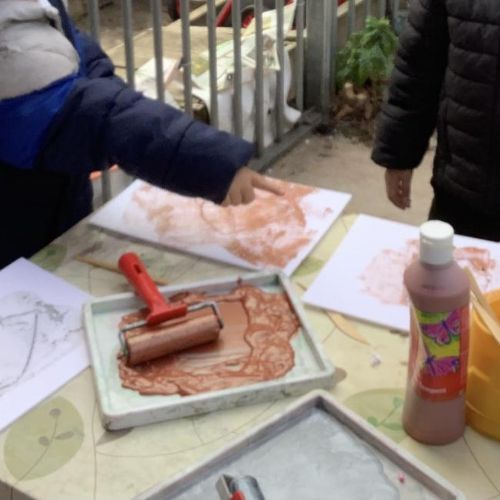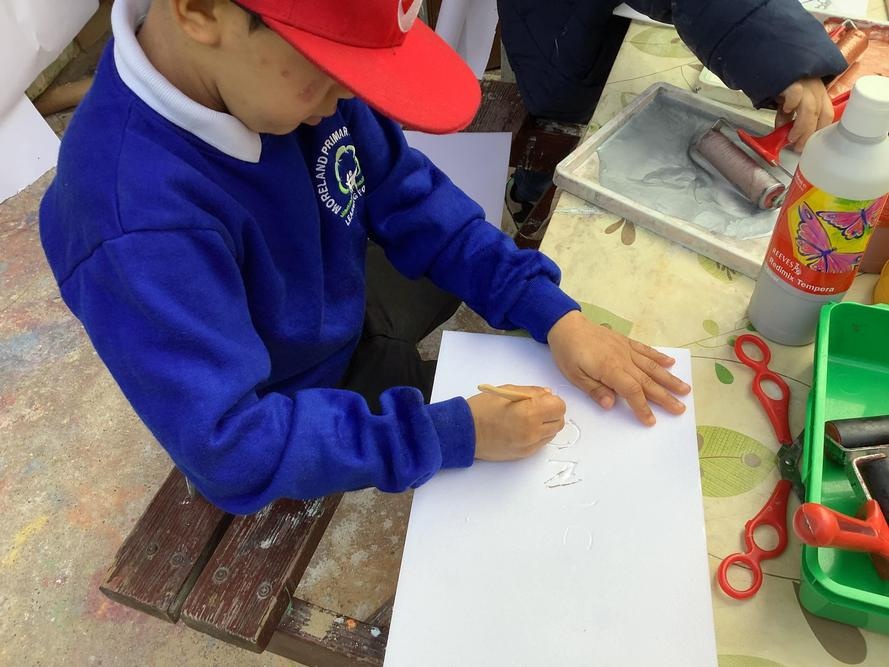 Children in Beech class used polystyrene to engrave patterns into. They then used rollers to paint over the engraving and printed onto white paper.