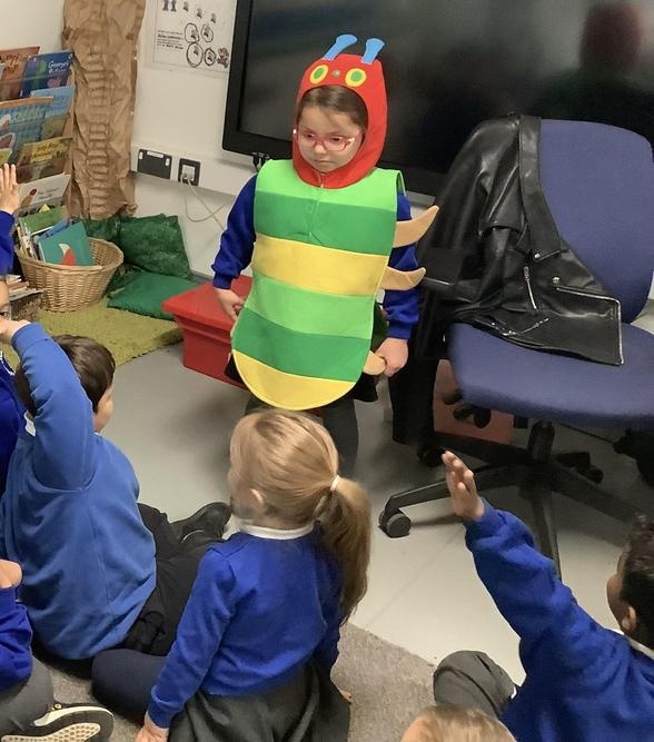 Our focus book this week is The Very Hungry Caterpillar. The children had the opportunity to ‘hot seat’ the caterpillar and ask the caterpillar lots of questions about the food it ate and how it feels about becoming a butterfly.