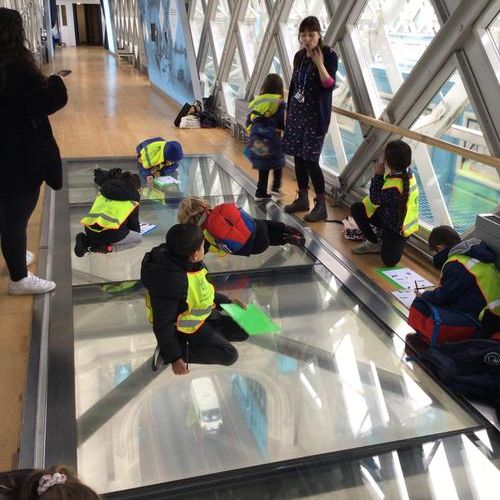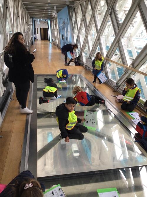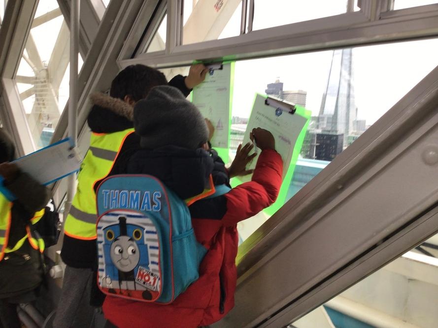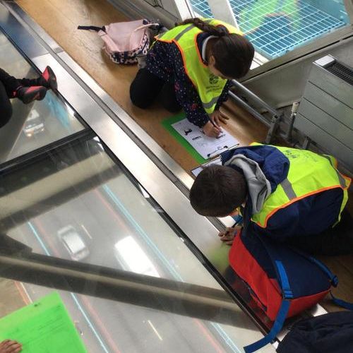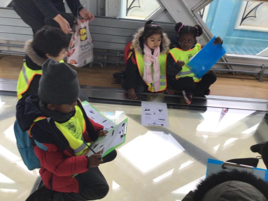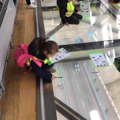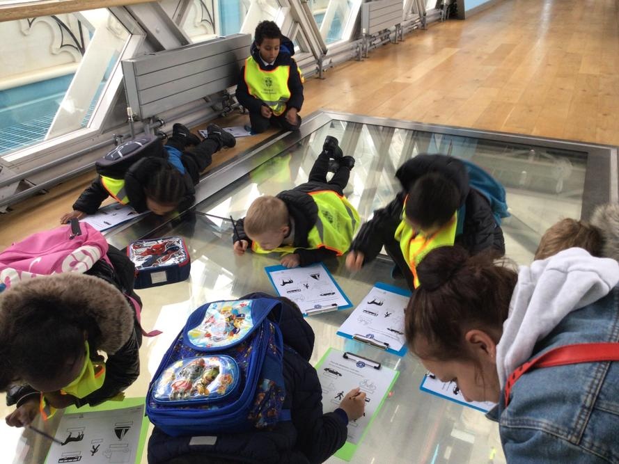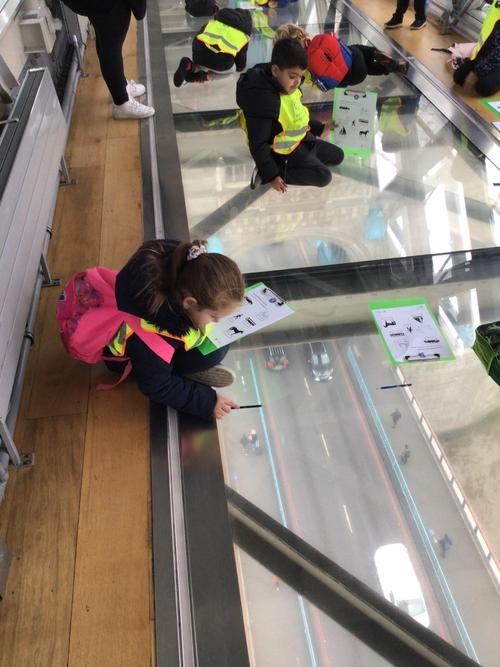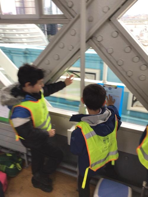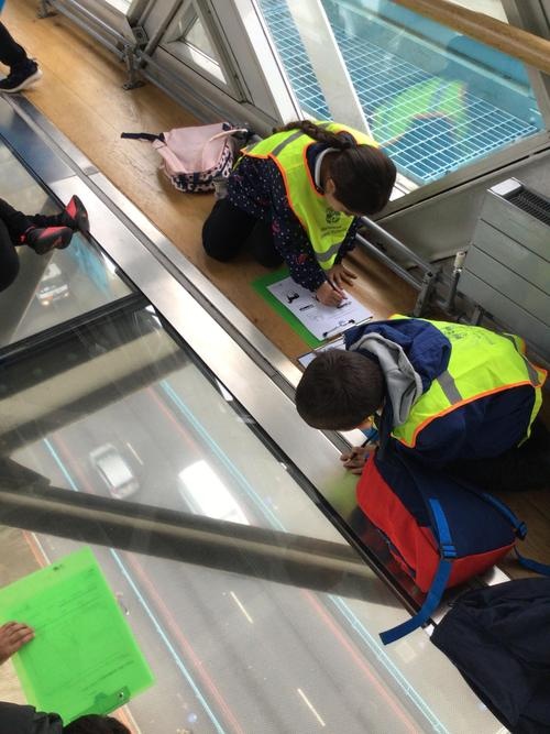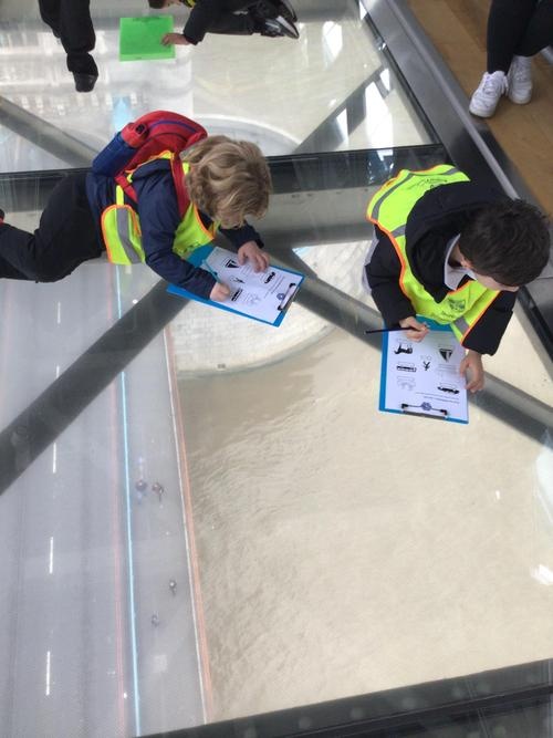 The children were so excited when we got to the top and looked through the glass floor. We recorded the vehicles we could see and one group were very lucky to see the bridge open.