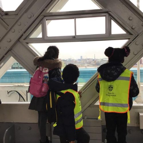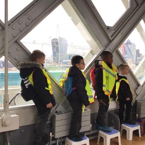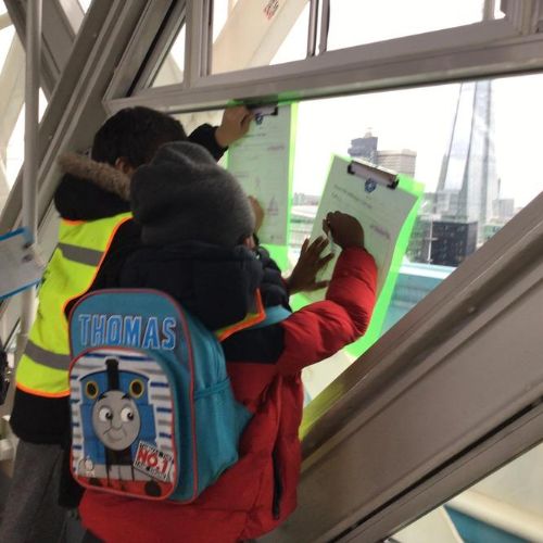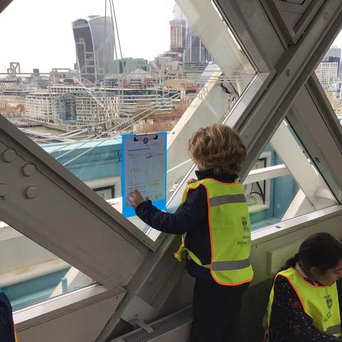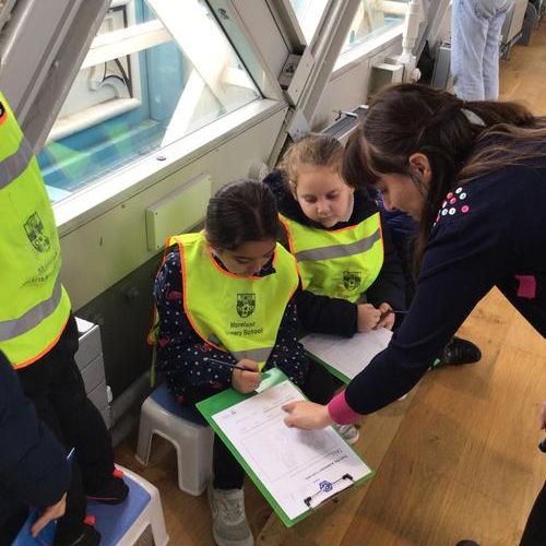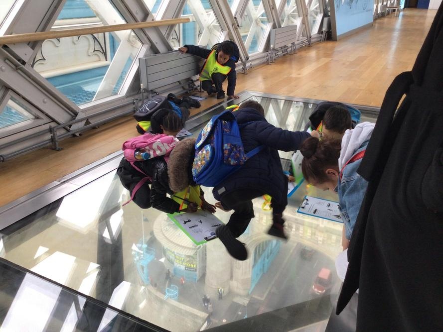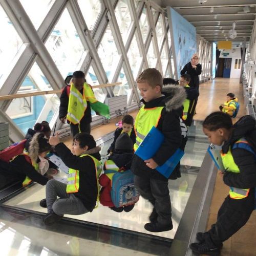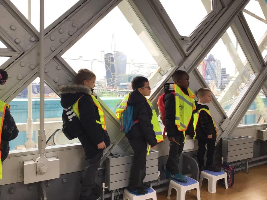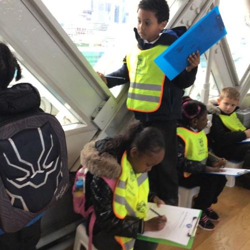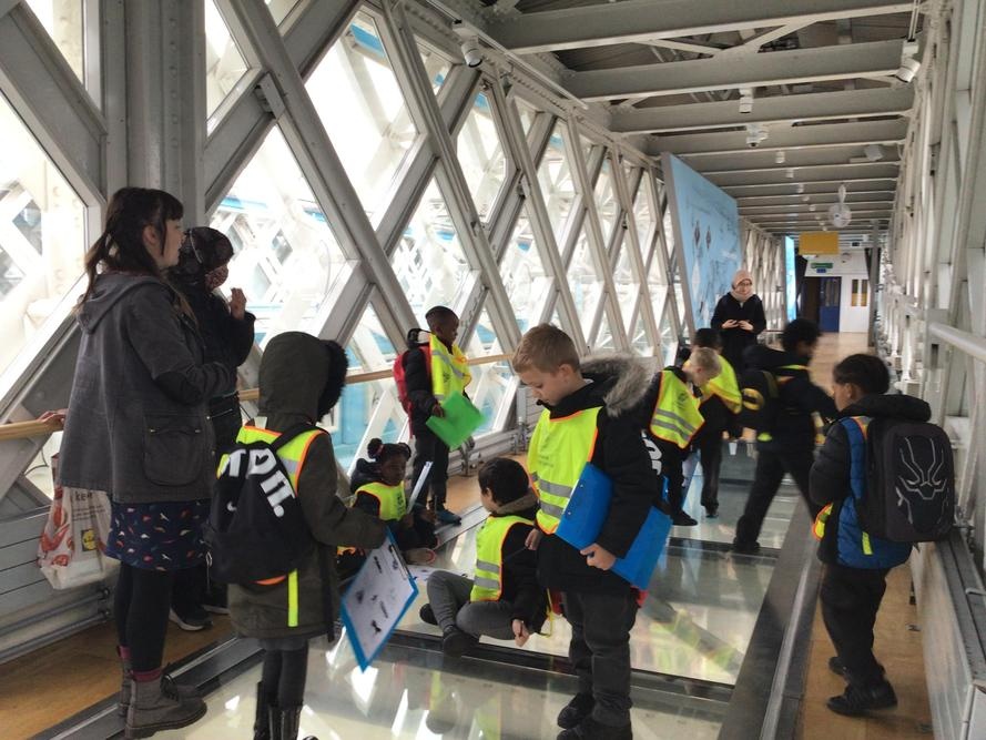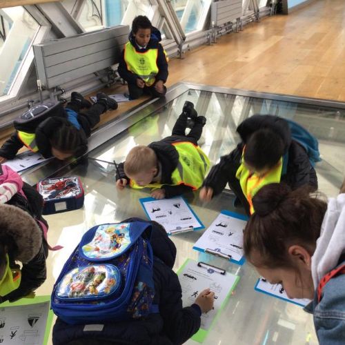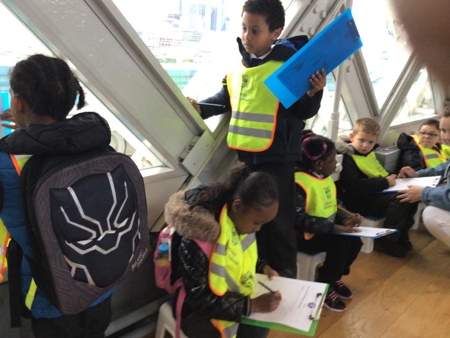 The children were so excited when we got to the top and looked through the glass floor. We recorded the vehicles we could see and one group were very lucky to see the bridge open.