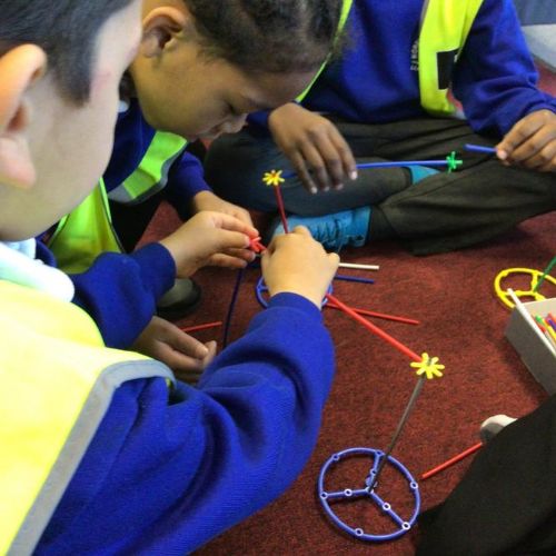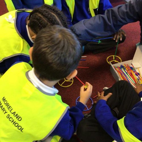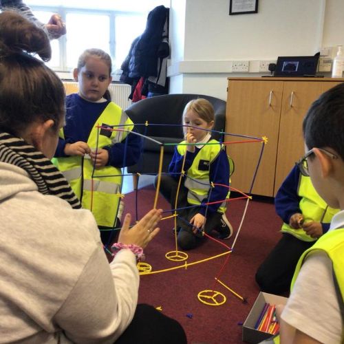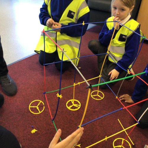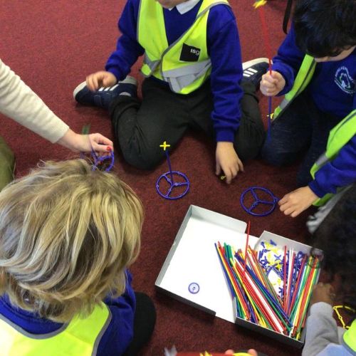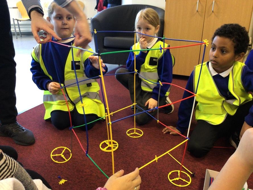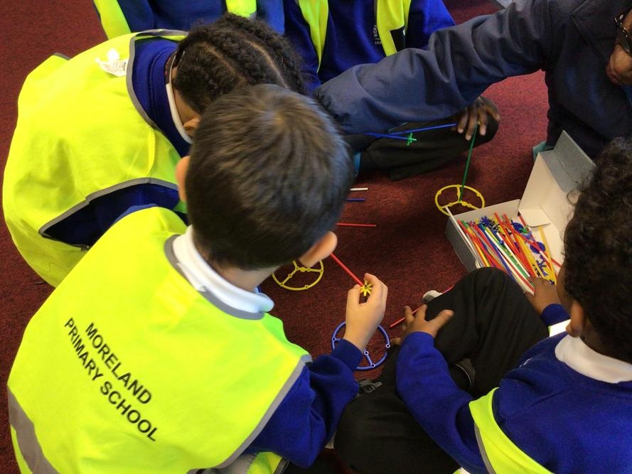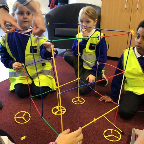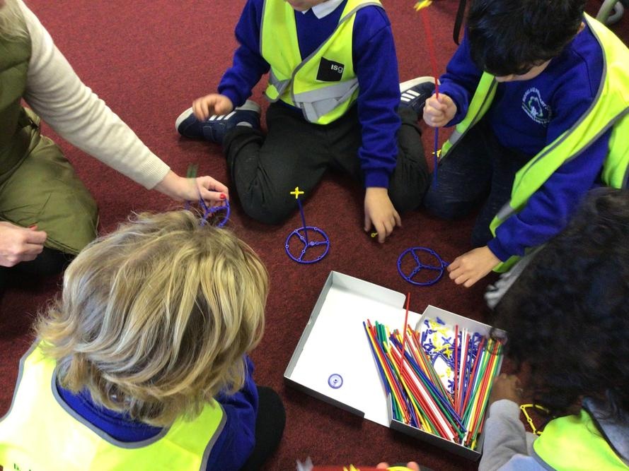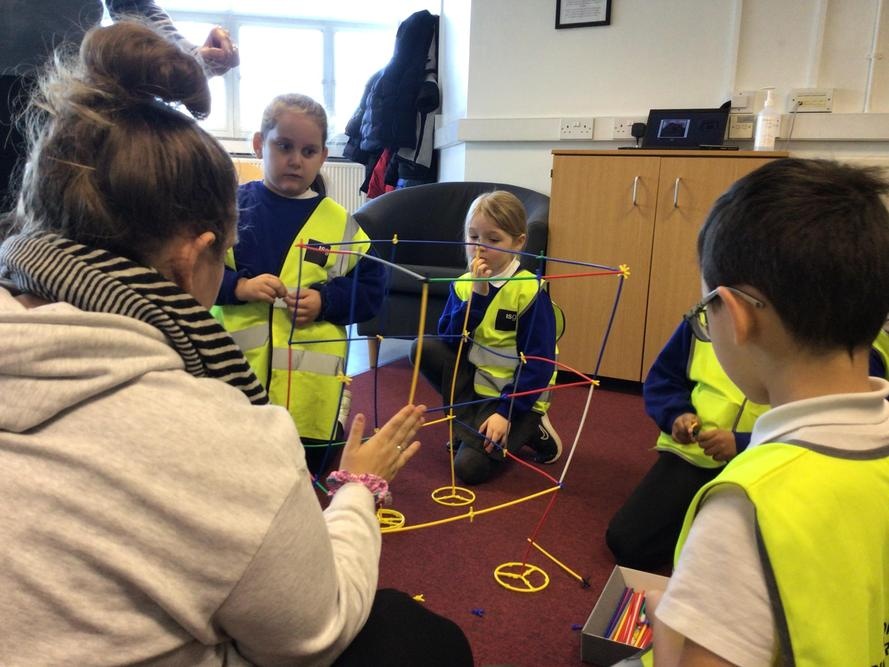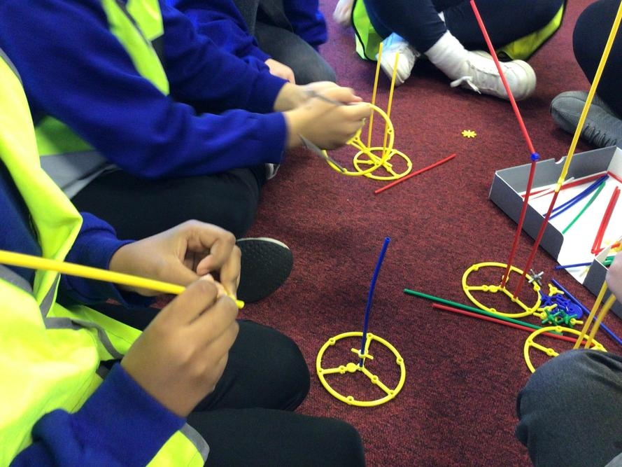 The children created their own towers using straws and connectors and used their engineering knowledge about shapes to build the towers tall and strong.
