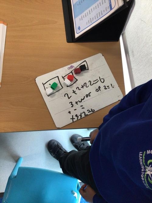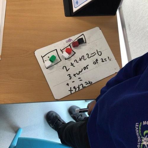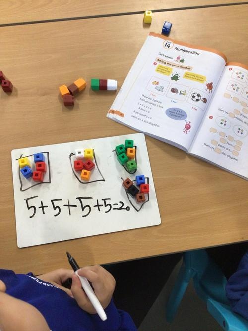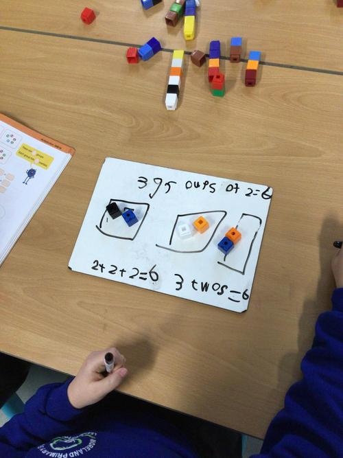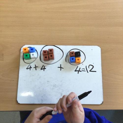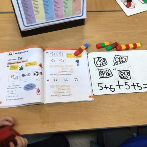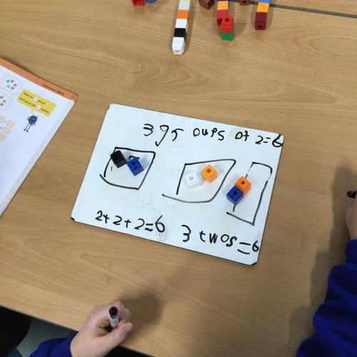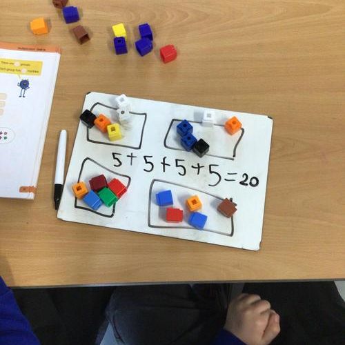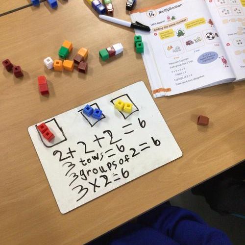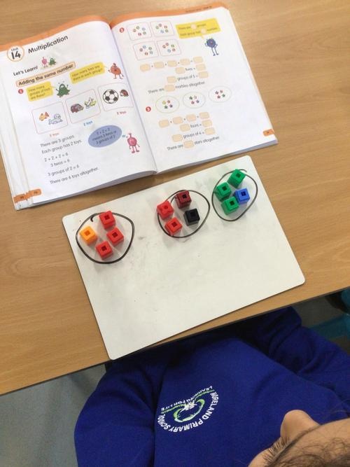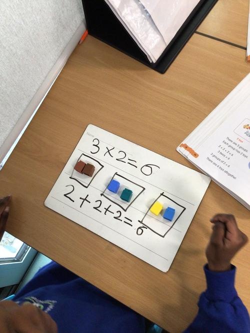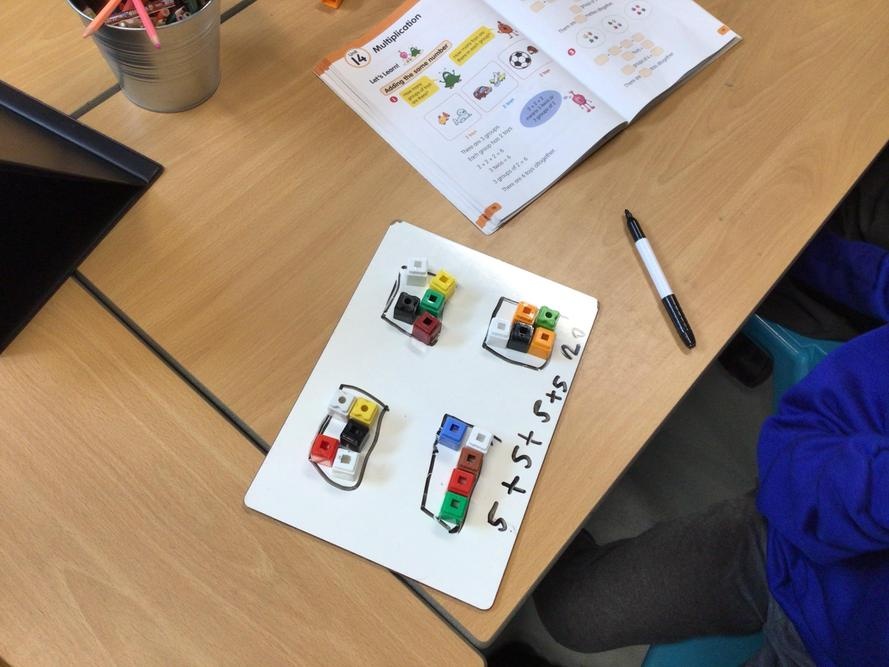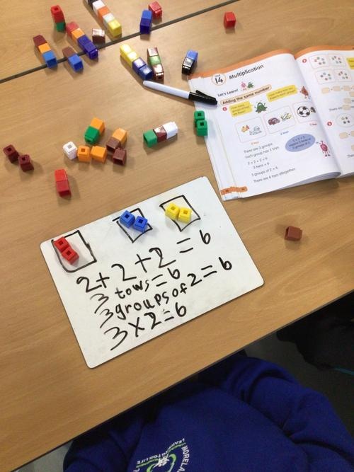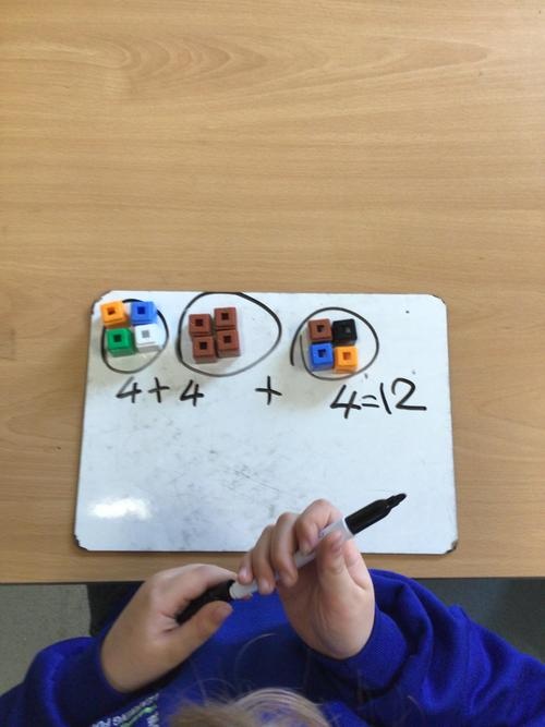 In Maths we have started Multiplication. We first learnt that When you 'multiply' or 'times' a number you add it to itself a number of times, for example 4 multiplied by 3 is the same as saying 4 + 4 + 4 = 12.