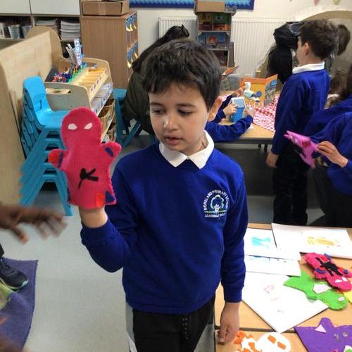 We have been designing and creating our own puppets. The children draw three designs and then chose their final design thinking about the materials and resources they would need.