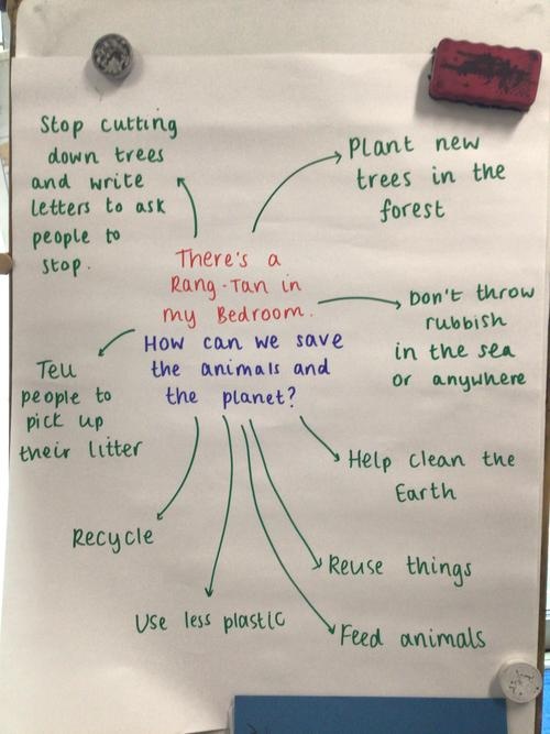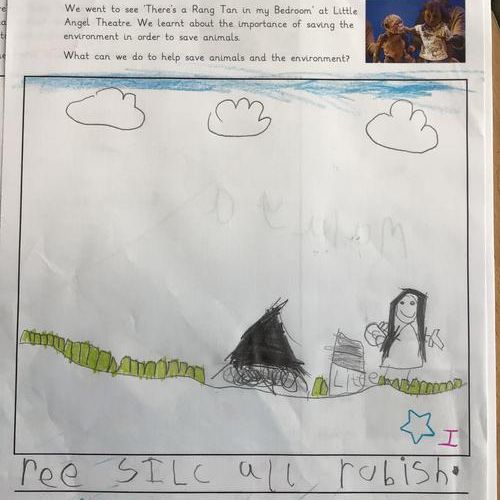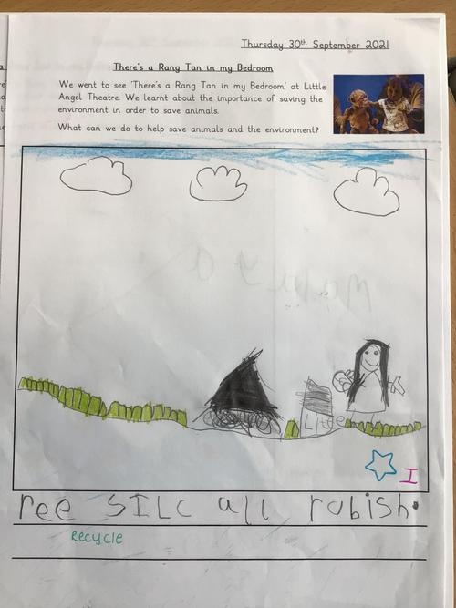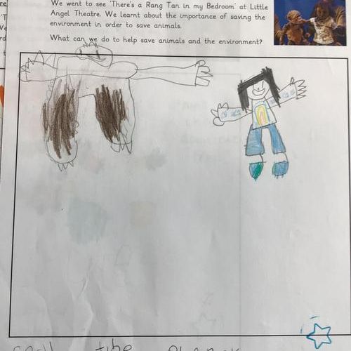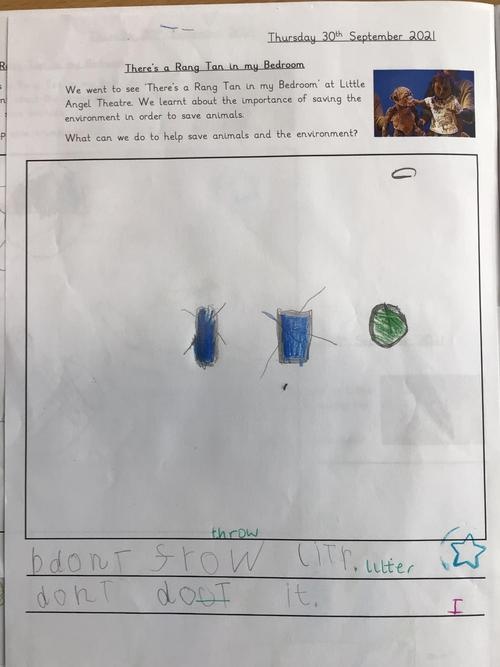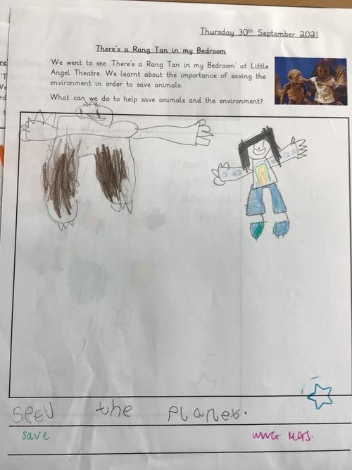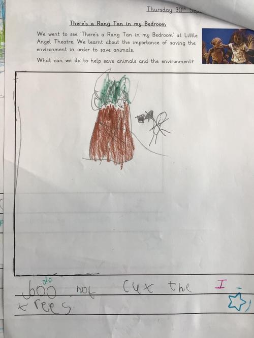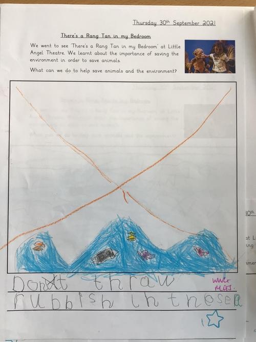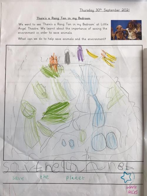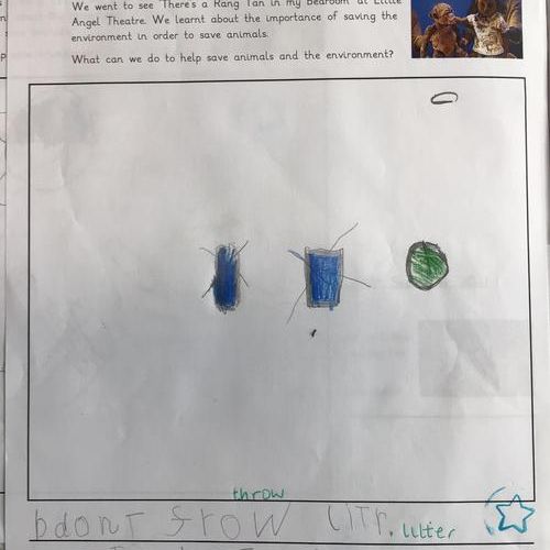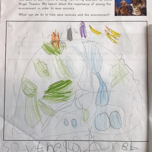 In the show we learnt about ways that we can help save animals by being kinder to the planet. When we got back from our trip, we made posters telling others what we could do to help the environment.