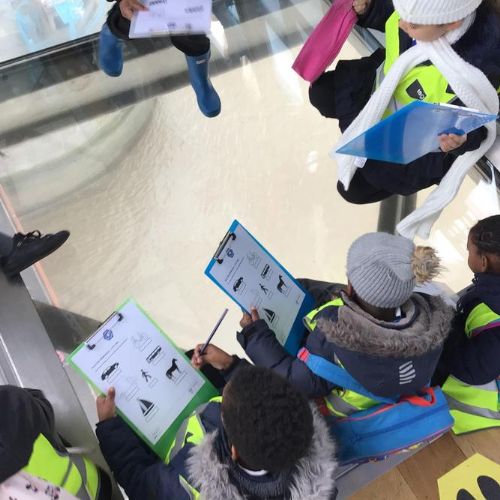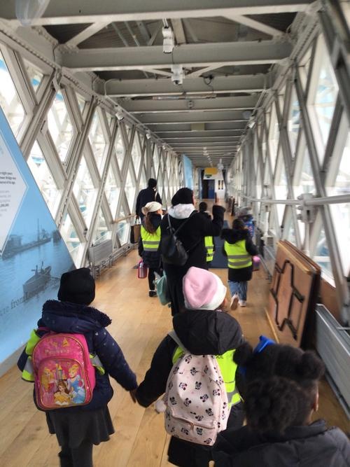 First we went to the Engine Rooms to see how Tower Bridge used to be powered. After that we were able to go up to the top of Tower Bridge and along the walkway and glass floor which was very exciting! At the top we sketched some of the buildings we could see and counted the modes of transport we could spot.