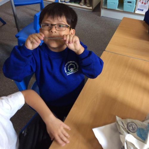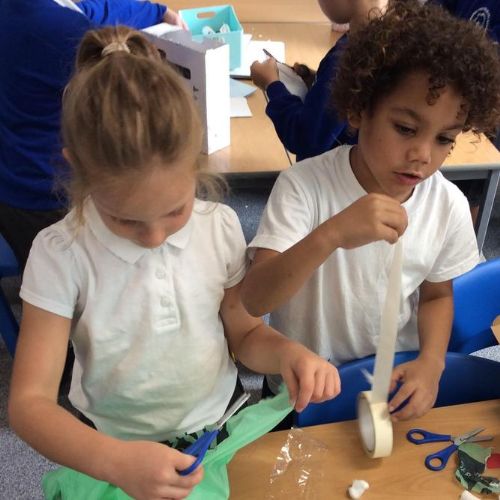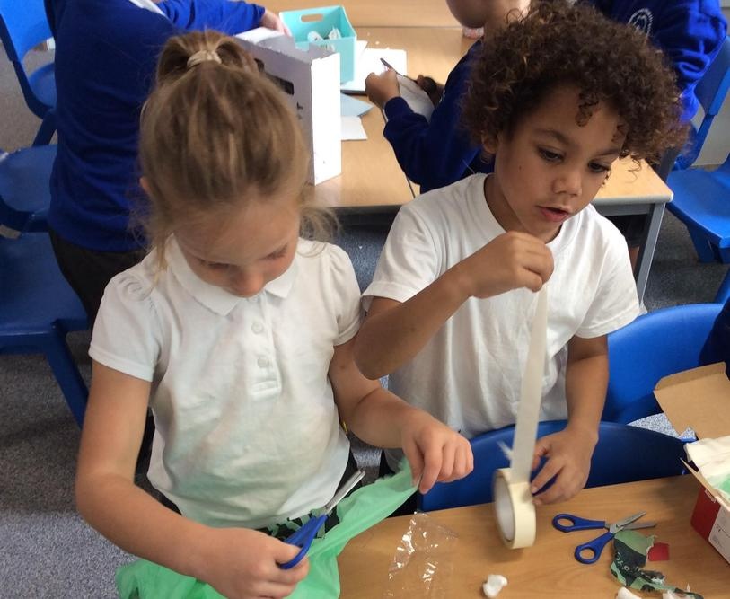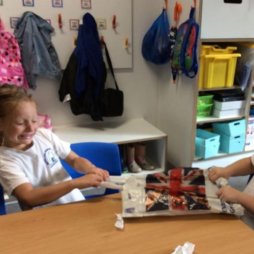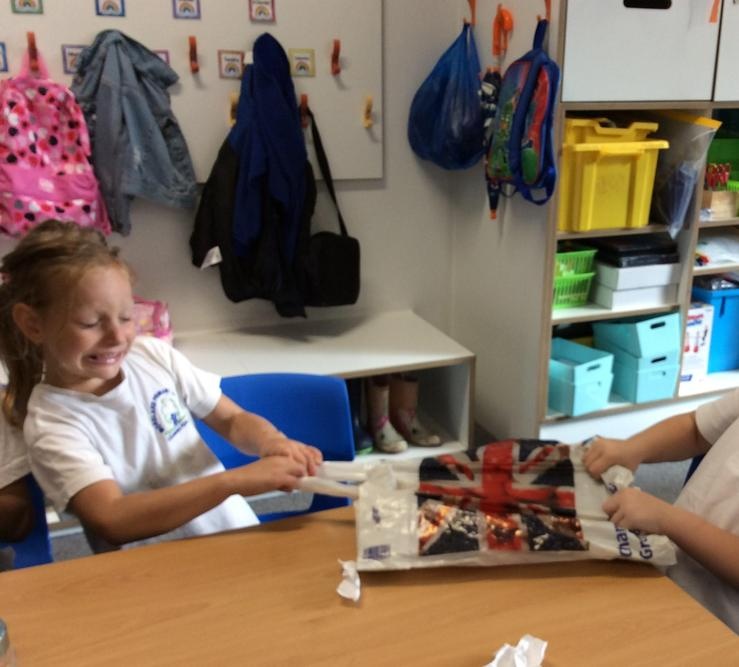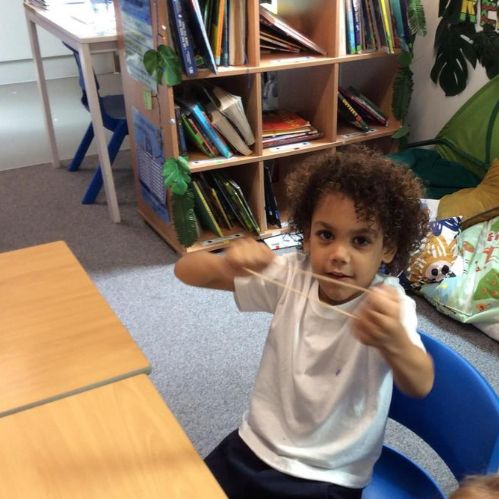 The children worked in pairs to explore different objects we have in the school and discussed their properties. We were looking to see if the objects were soft, hard, waterproof, absorbent, rough smooth, flexible, elastic and squishy.