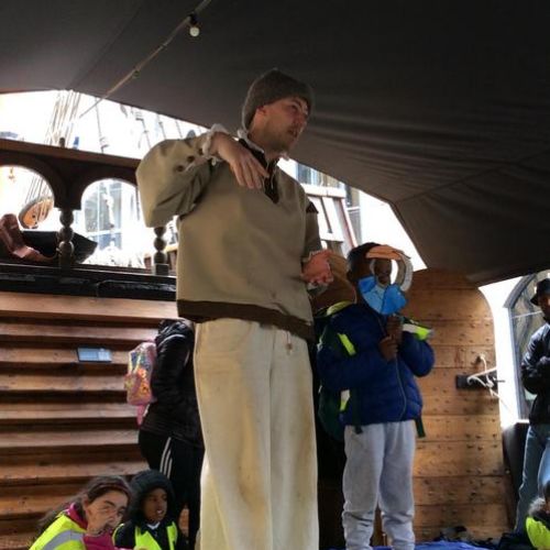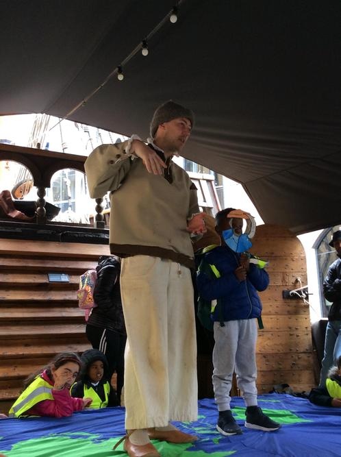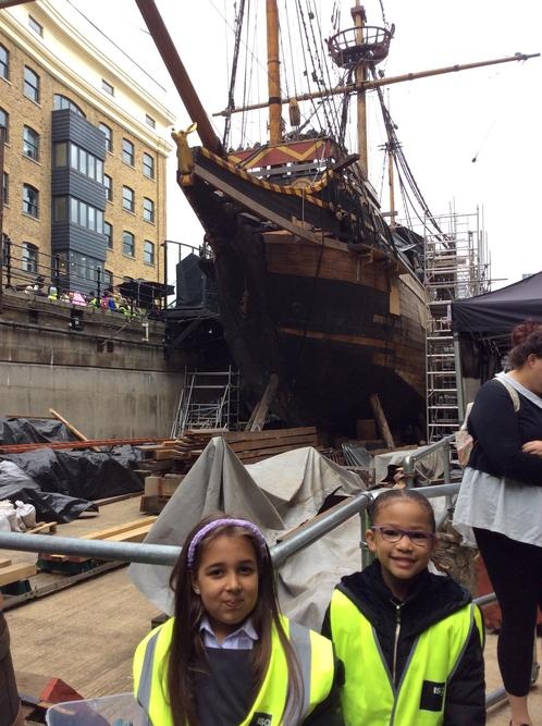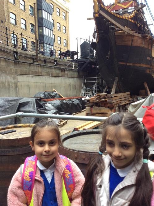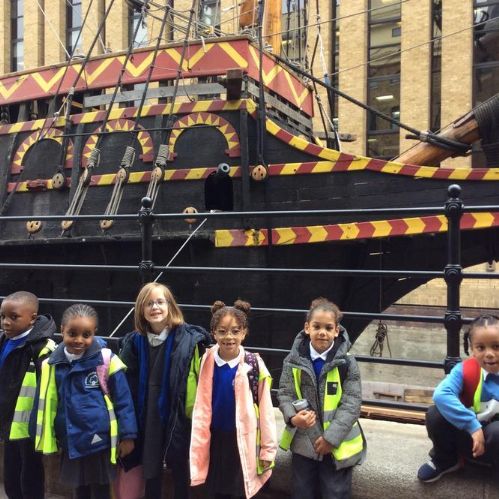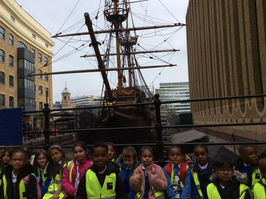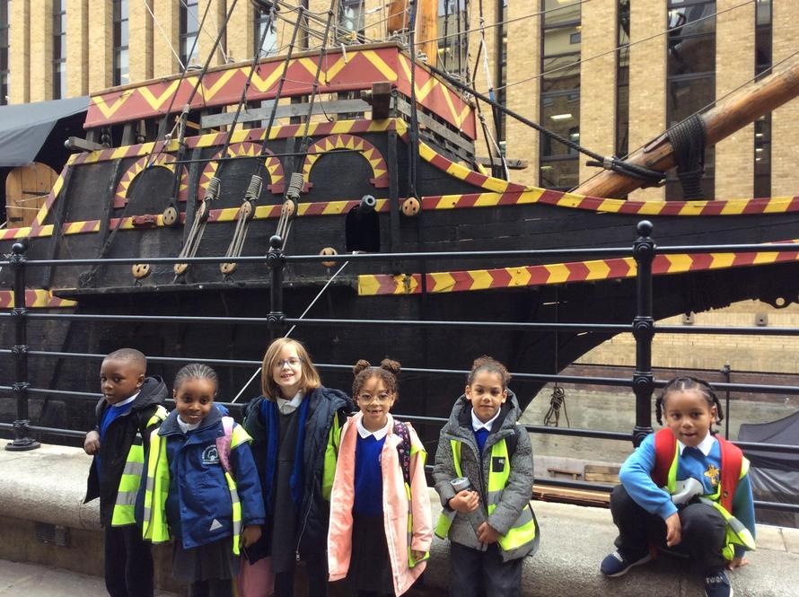 This week we took a school trip to the Golden Hinde for our topic Land Ahoy! We have been learning all about Sir Francis Drake as well as life on board a pirate ship so it was great to see one in real life. We leant more about Sir Francis Drake’s voyage around the world and even got to handle some pirate weapons.
