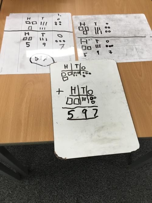 This week in maths we have been learning about different ways to add and subtract numbers up to 1000. We focused on the column method and learnt how to carry and borrow from the next column. We used dienes and place value charts to help build our confidence before moving on to written sums.