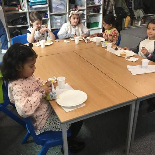 We celebrated World Book Day by having a Mad Hatter tea party. We had some special visitors in the morning who shared the story Alice in Wonderland with us and then enjoyed a tea party where we shared lots more stories. We spent the whole day celebrating reading and sharing our favourite books.