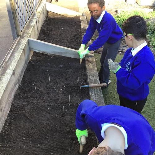 This week we worked alongside Emma and Kieron Schiff from Country Trust, who is going to be working with us on our gardening project, to begin planting our beds ready to grow some vegetables and fruit in the spring term. We even planted some seeds ourselves to bring home! We had lots of questions about the different plants we were growing and loved working in the garden and getting nice and messy planting up the beds. We cannot wait to see our seeds begin to grow!