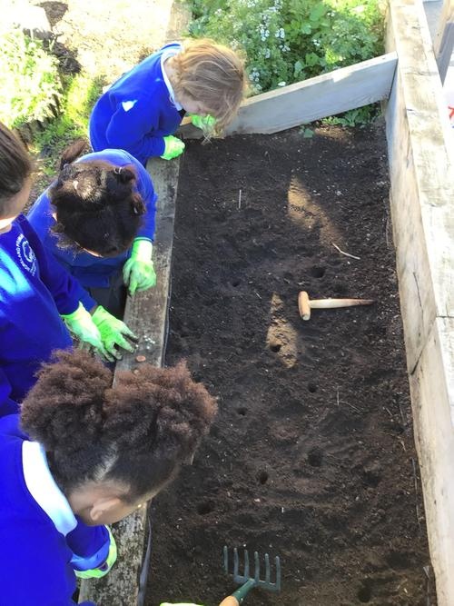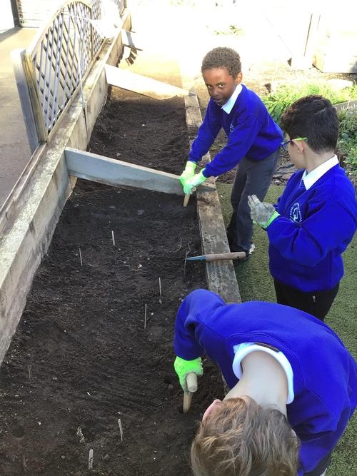 This week we worked alongside Emma and Kieron Schiff from Country Trust, who is going to be working with us on our gardening project, to begin planting our beds ready to grow some vegetables and fruit in the spring term. We even planted some seeds ourselves to bring home! We had lots of questions about the different plants we were growing and loved working in the garden and getting nice and messy planting up the beds. We cannot wait to see our seeds begin to grow!