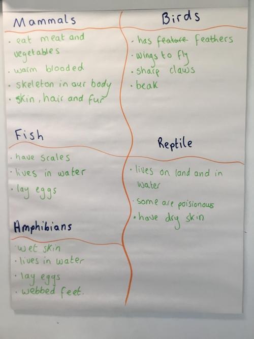 In Science this week we have been learning about animals and grouping them into the different animal groups. Mammal, Reptile, Amphibian, Bird and Fish