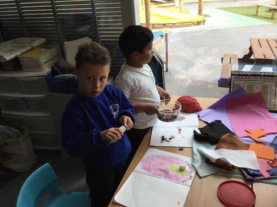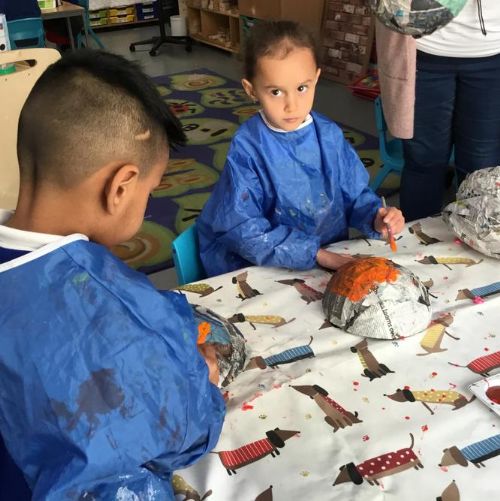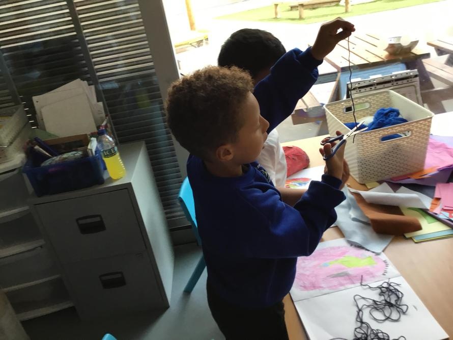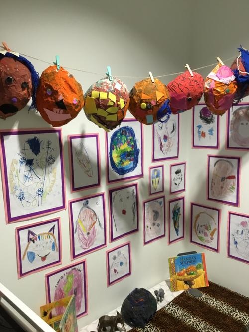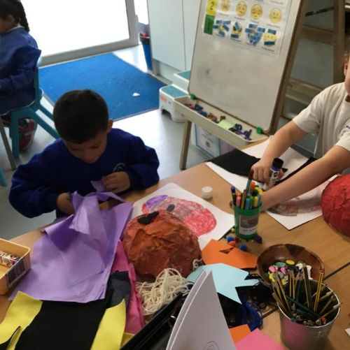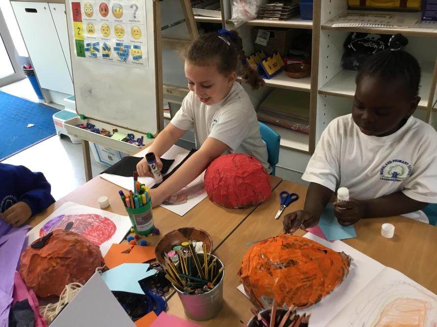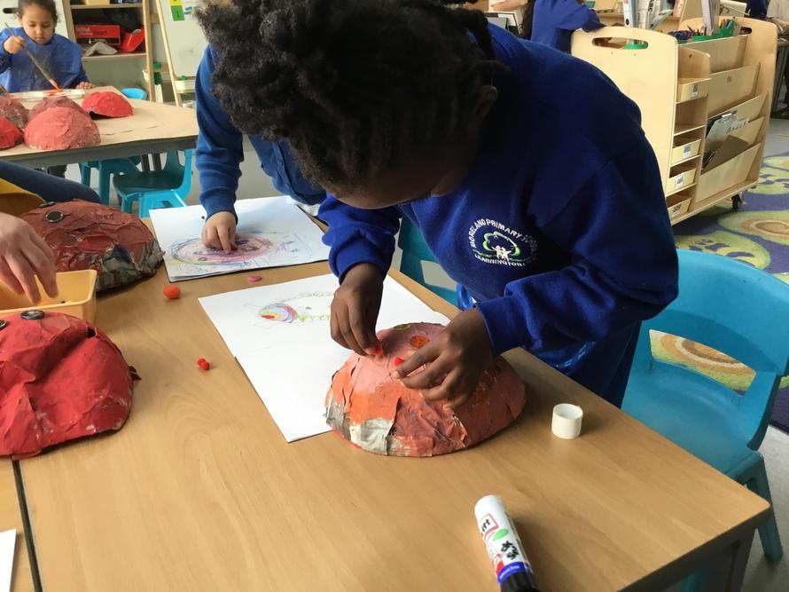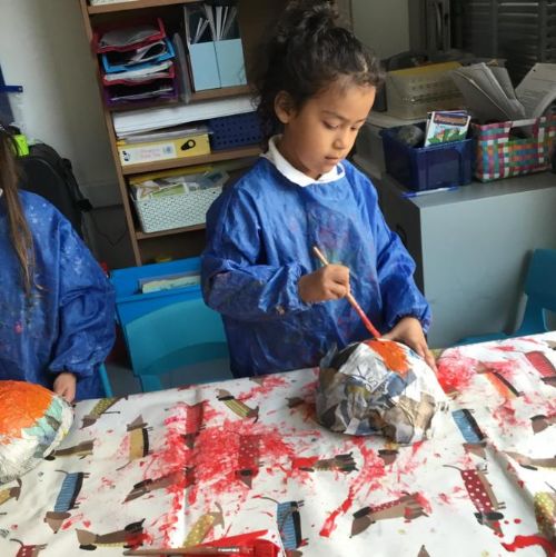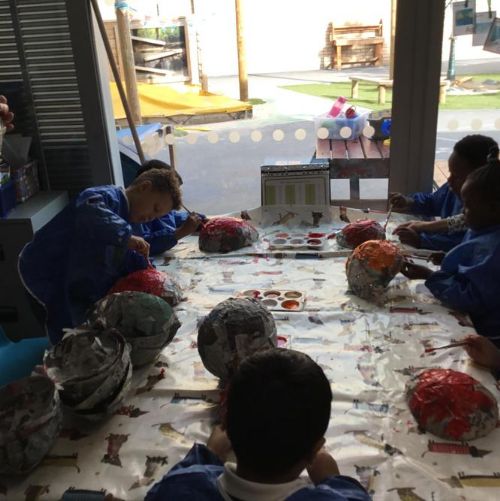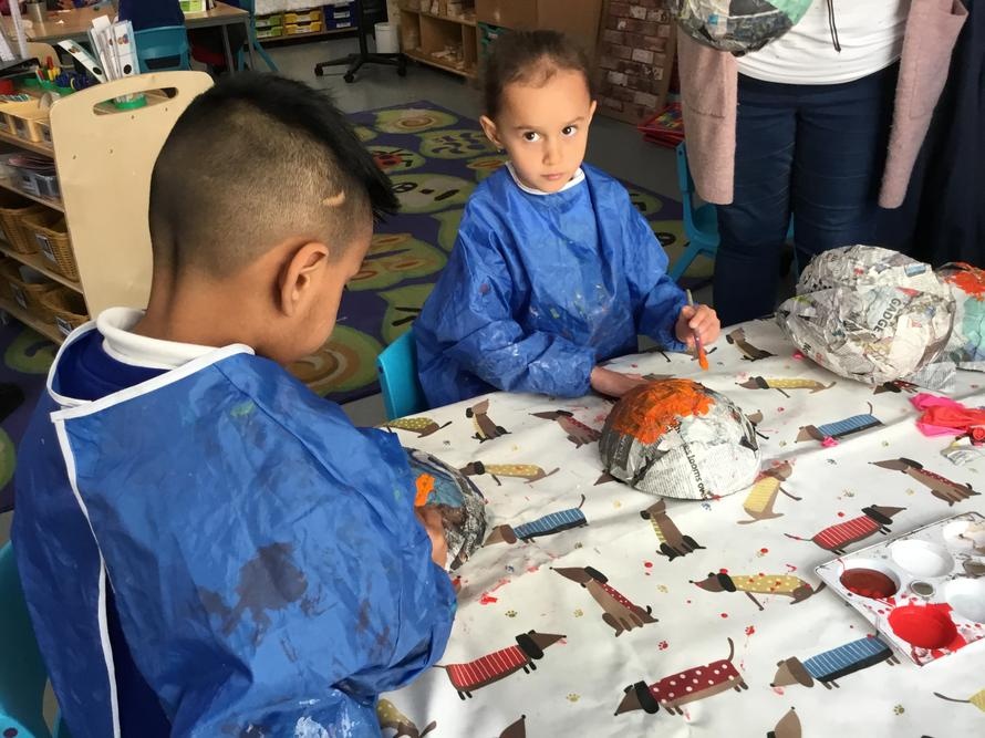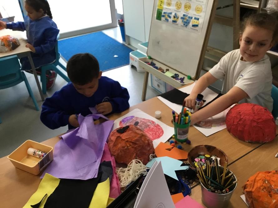 Next came to messy bit of creating the structure for our mask by using a balloon and papier mache. The children loved covering the balloons and then adding the final detail to the masks.