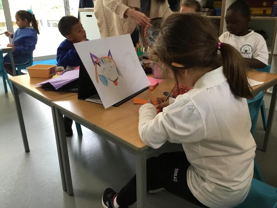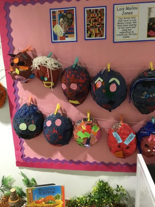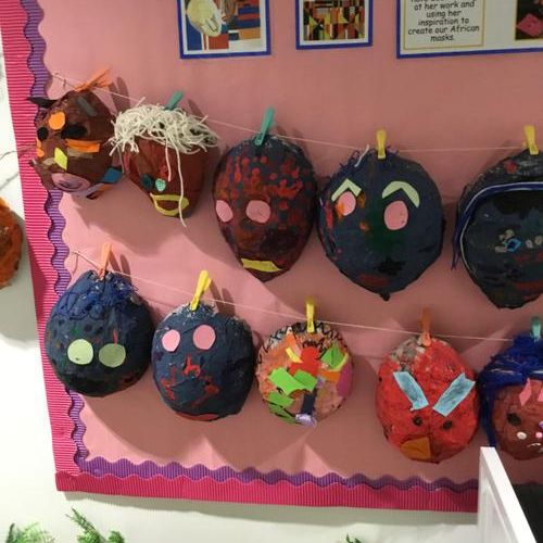 First we learnt how to create a self portrait of our faces, then we used these faces and turned them into African mask designs.