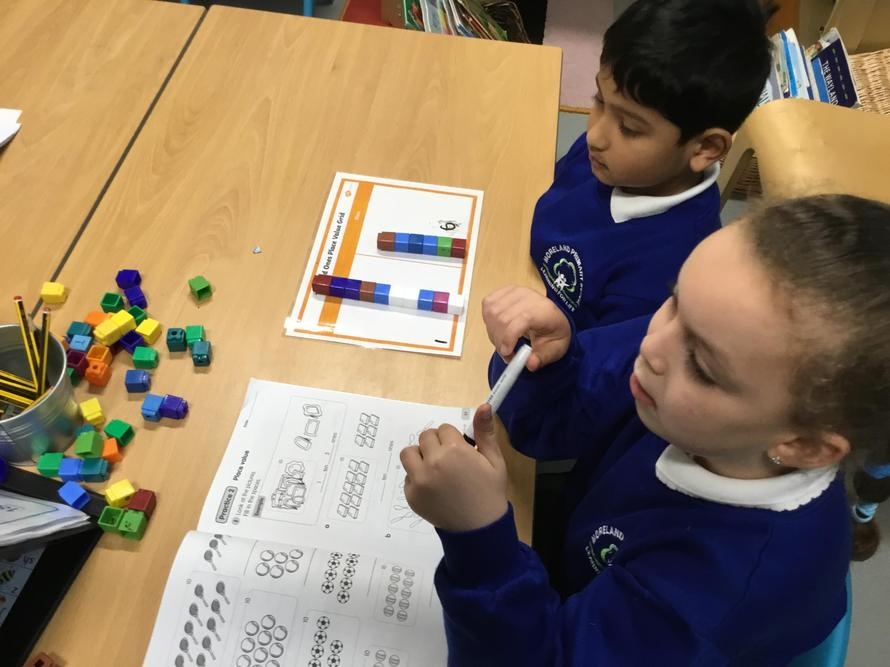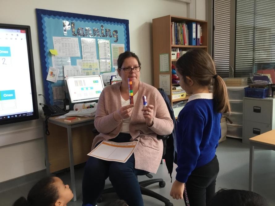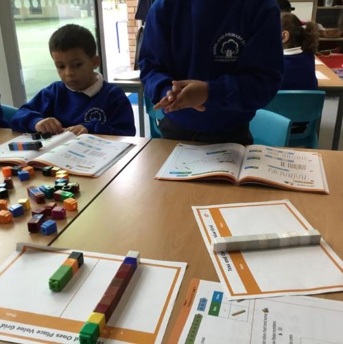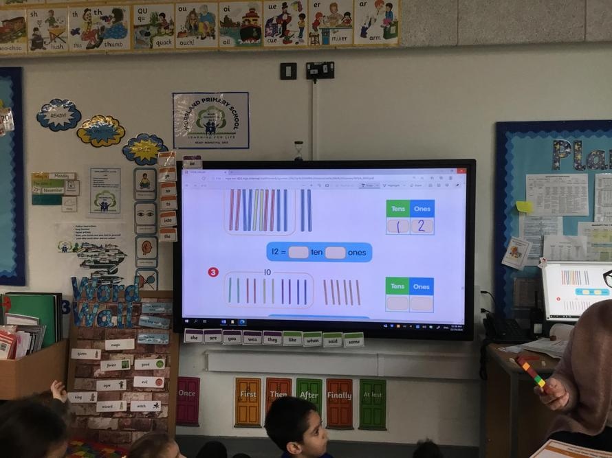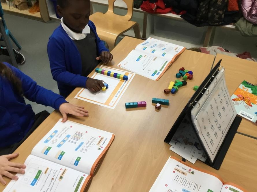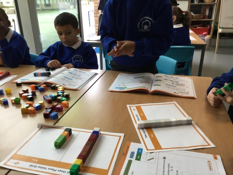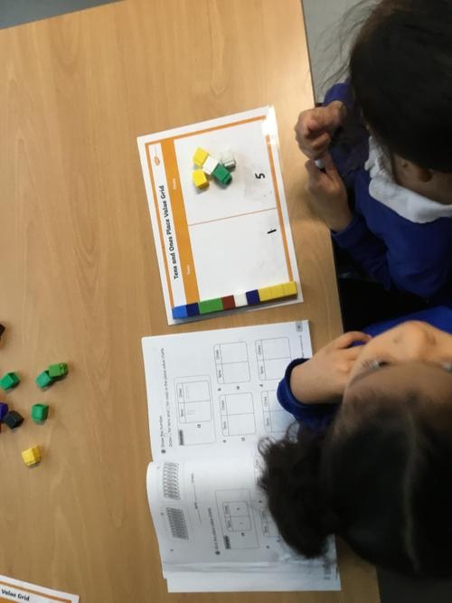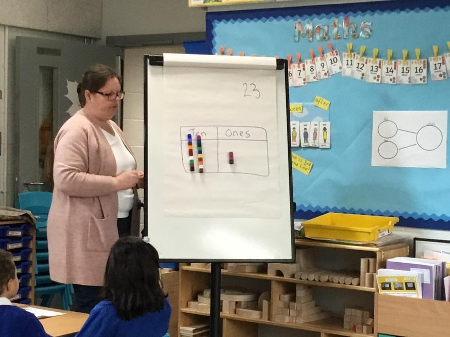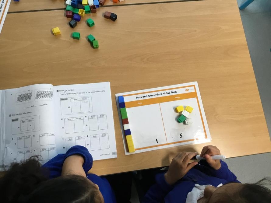 We have started to learn about place value and how we use a base 10 when counting. The children have become familiar with the words Tens and Ones and are using these when they are discussing their ideas and answers.