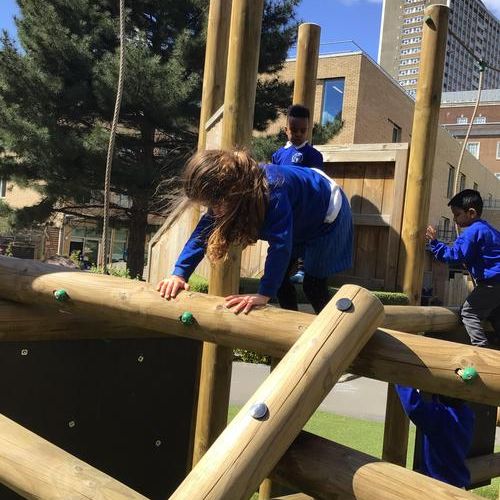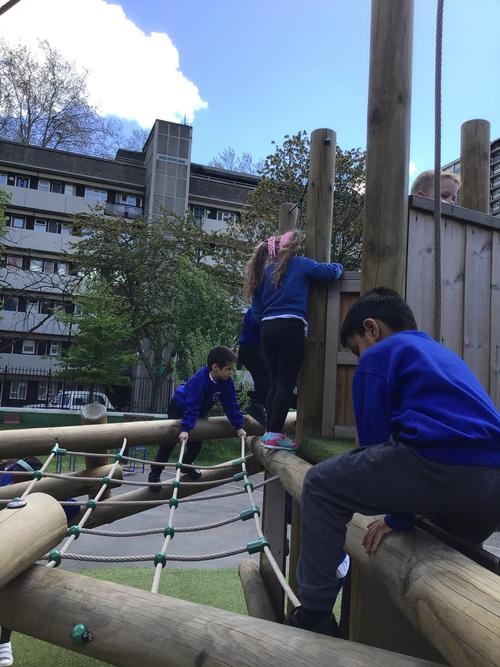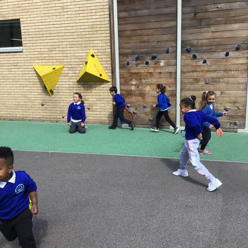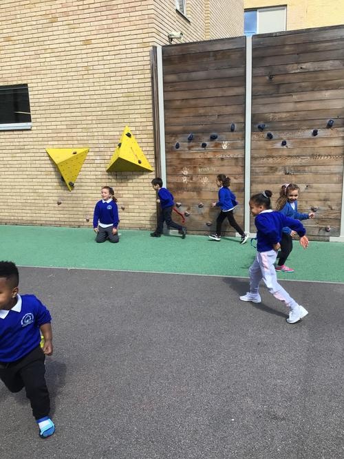 In Physical Education our topic this term is Games. We warmed up our bodies by using the large climbing frame, many children found climbing on the large frame quite difficult but with determination and perseverance they managed.