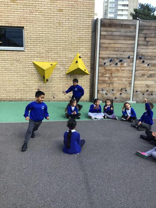 We then went into the playground and played cat and mouse- a chasing and catching game and duck duck goose.