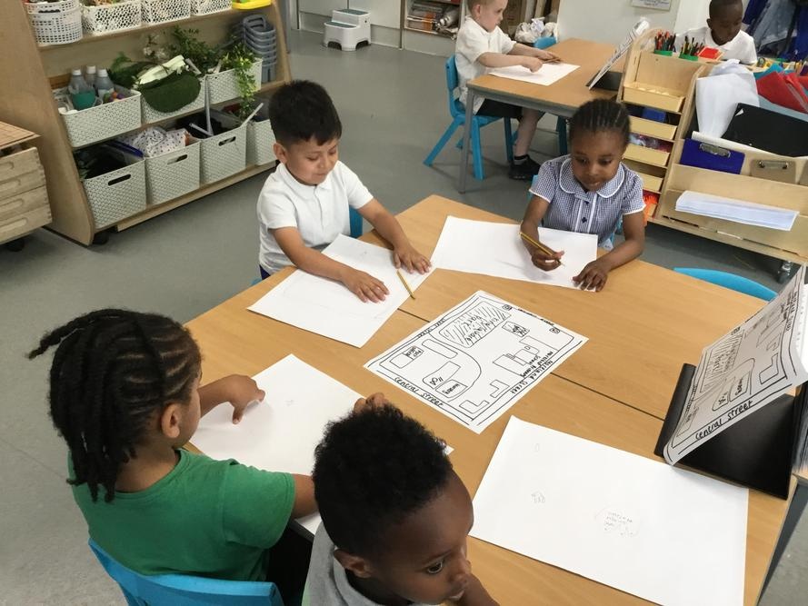 We have been focusing on looking at maps. We started by looking at maps of the world, then zoomed into the United Kingdom and England. We then looked at maps of the local area, maps of the school and maps of the classroom.